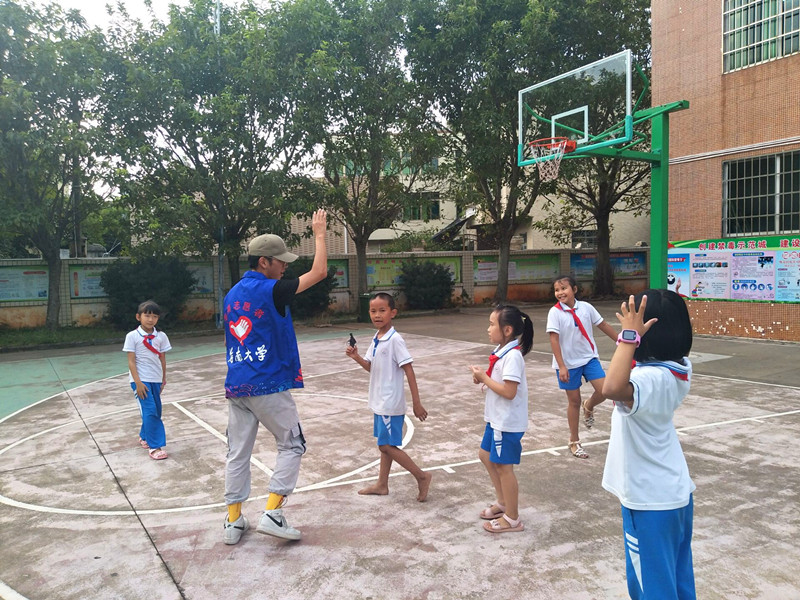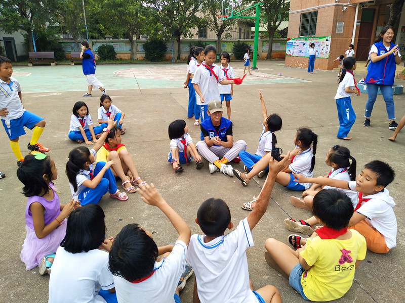 第二堂课是活动课,志愿者带领学生们在操场上进行了跳格子、老鹰捉小鸡等游戏,学生们热情地向志愿者讲解新奇的游戏规则,让志愿者融入游戏、一起互动,他们在校园中愉快地追逐嬉戏,时间一晃而过,在孩子们的欢声笑语中,本次活动落下了帷幕。