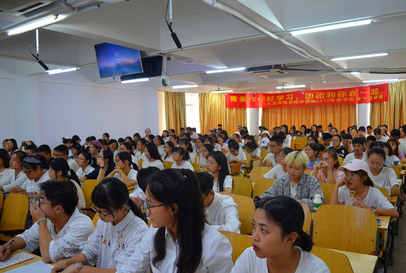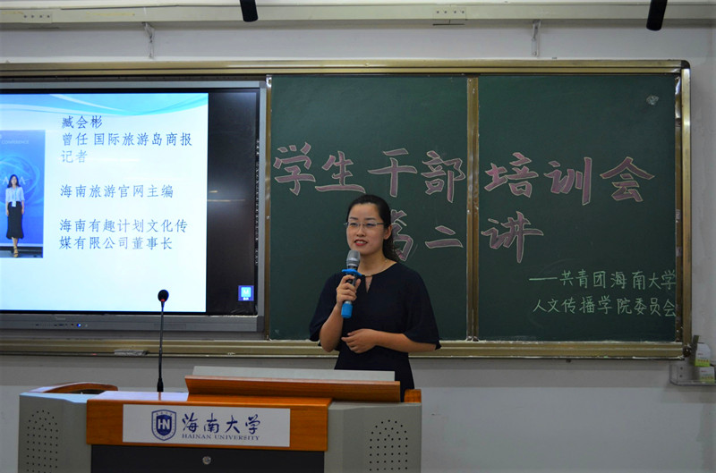 2018年11月13日下午14时,人文传播学院分团校“青春作伴好学习,团团和你在一起” 2018年度学生骨干培训第二讲于城西校区6c01教室顺利开展。本讲邀请到海南有趣计划文化传媒有限公司董事长、海南旅游官网主编、新闻记者臧会彬担任主讲嘉宾,学院团委学生副书记秦天主持本讲课程。