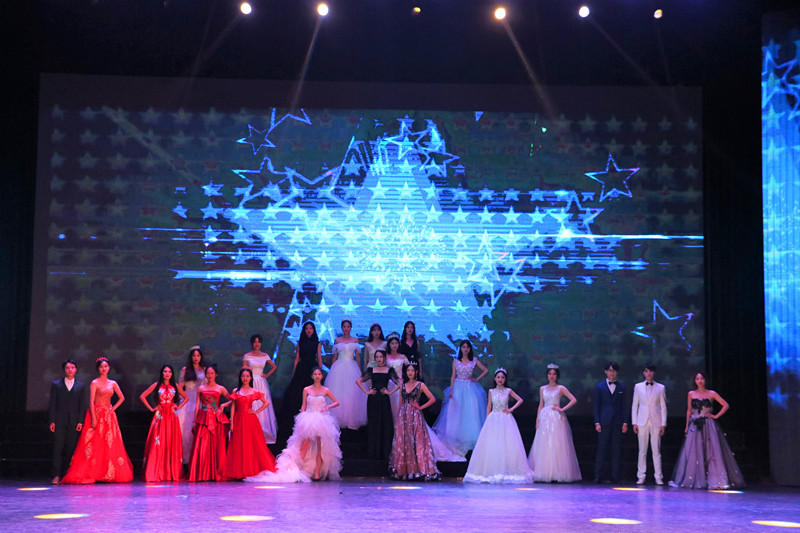 在第三篇章“解忧云水谣”中, 17级中文四班的同学们身着汉服带来群舞《破晓》,舞者们尽态极妍,舞出人文院的厚重底蕴;笑声工作坊带来的喜剧《因为你是女侠》,幽默的剧情与演员们极具感染力的表演让观众们捧腹大笑,深刻的主题又让观众们在笑后有所思考。备受期待的走秀《青芷芳华》创新性地加入汉服元素,精彩的走秀表演,惊艳四座,尖叫欢呼声此起彼伏;晚会尾声,由团学青成员们带来舞蹈《飞过时间的海》,欢快的歌声,整齐的舞步,彰显了团学青强大的凝聚力,会场的氛围被推向高峰,在不绝的欢呼声与掌声中,人文传播学院“南渡·少年游”迎新文艺晚会圆满落幕。