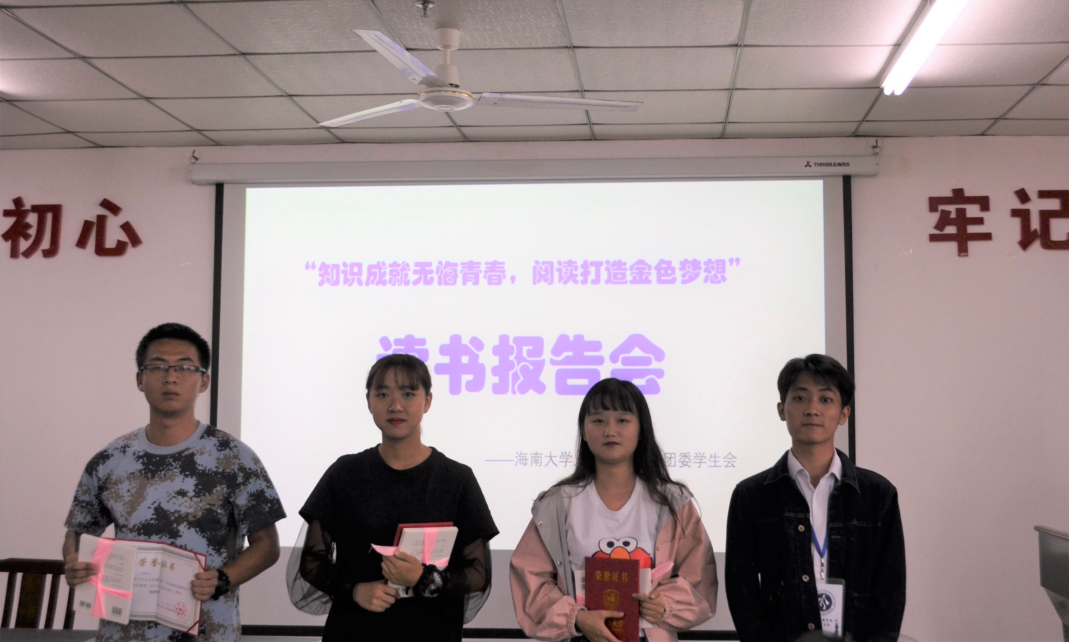 “立身以立学为先,立学以读书为本”。为了提高学生的阅读兴趣,培养学生爱读书、读好书的习惯,人文传播学院积极响应学校举办“读书活动月”的号召,于2018年11月24日上午9点在海甸校区社科楼B719会议室举办读书报告会预赛。人文传播学院学生会副主席黄朝恺,院优秀学生代表石雨函、王宏民、程润峰出席此次活动。