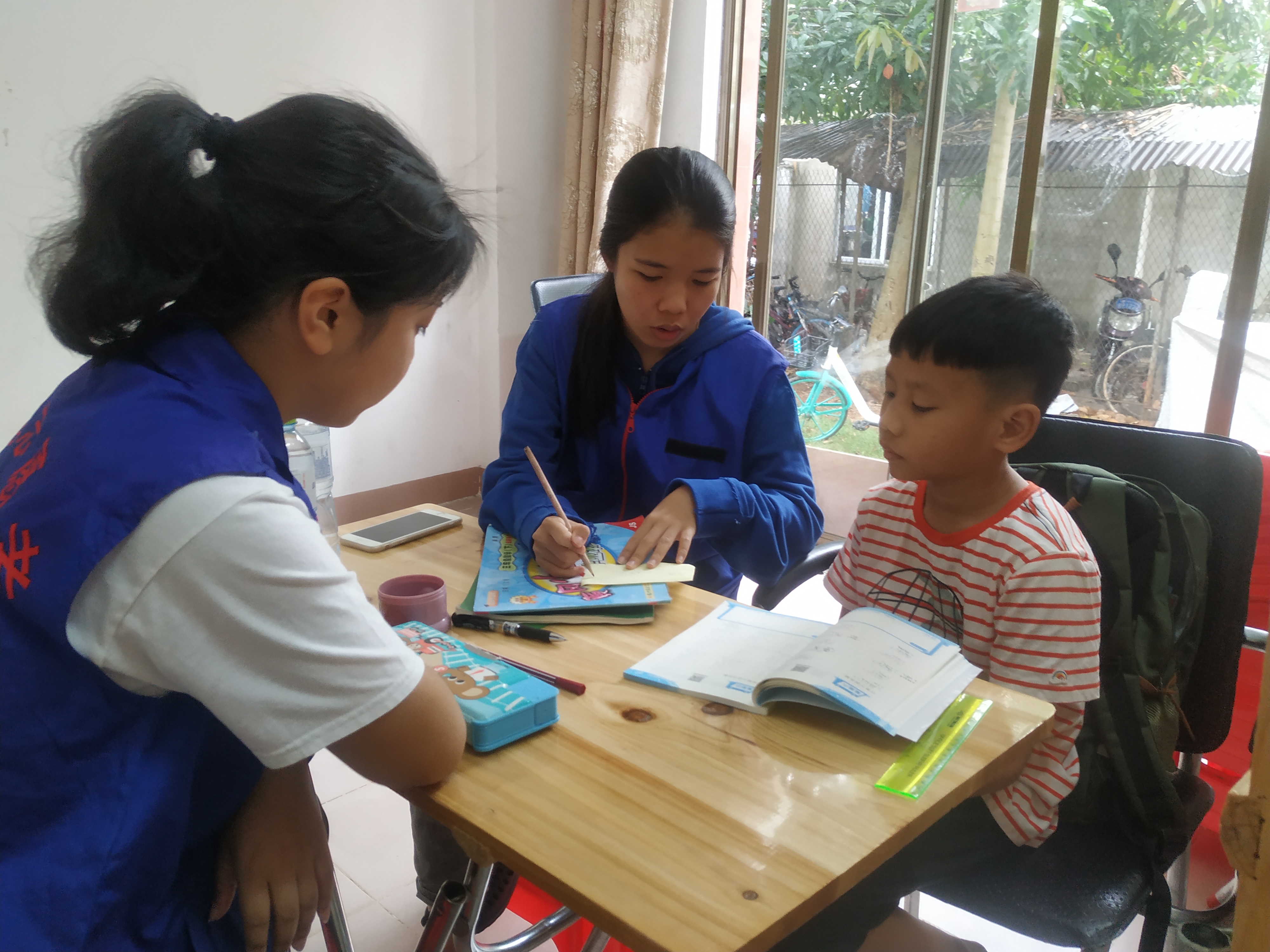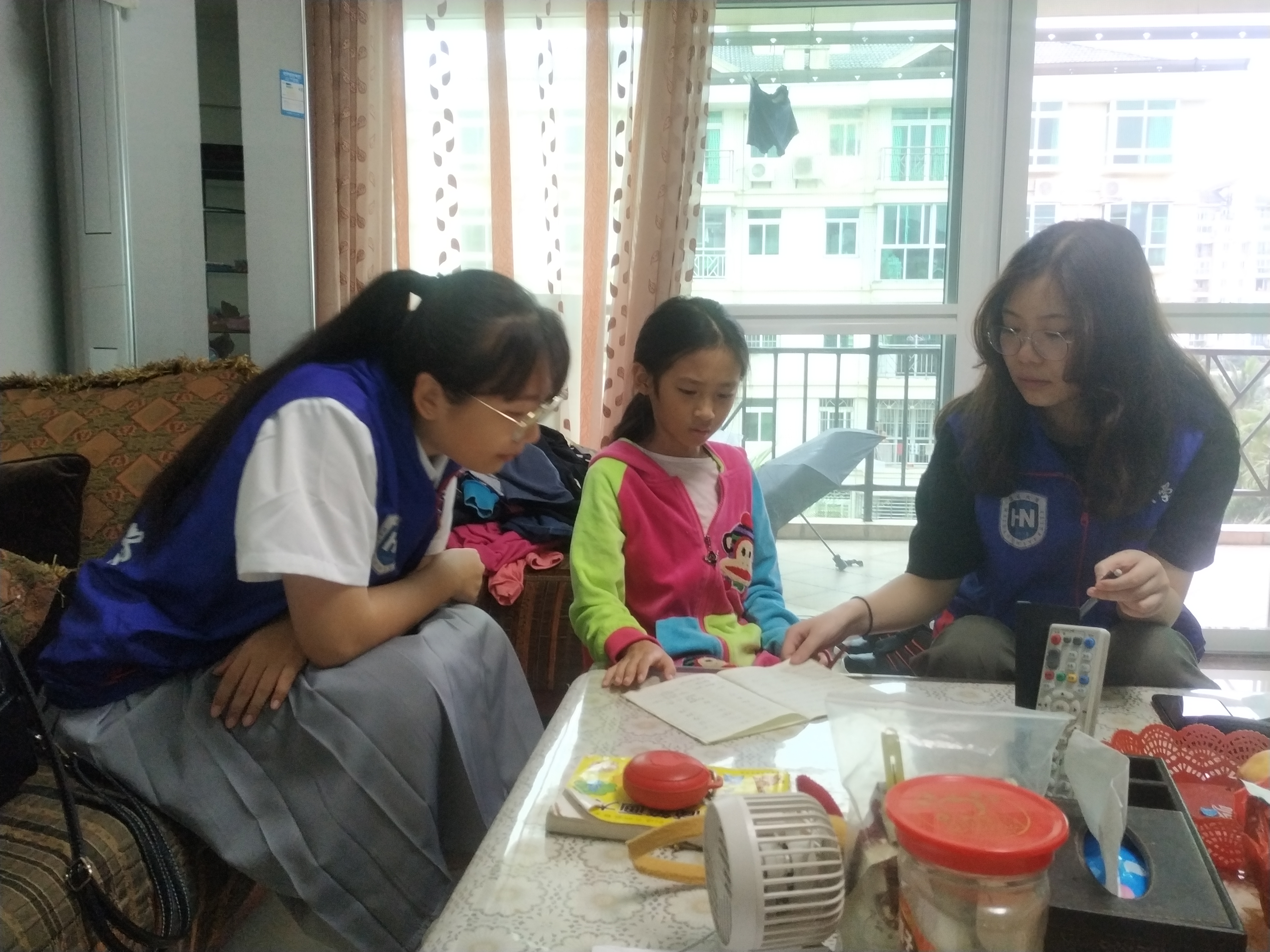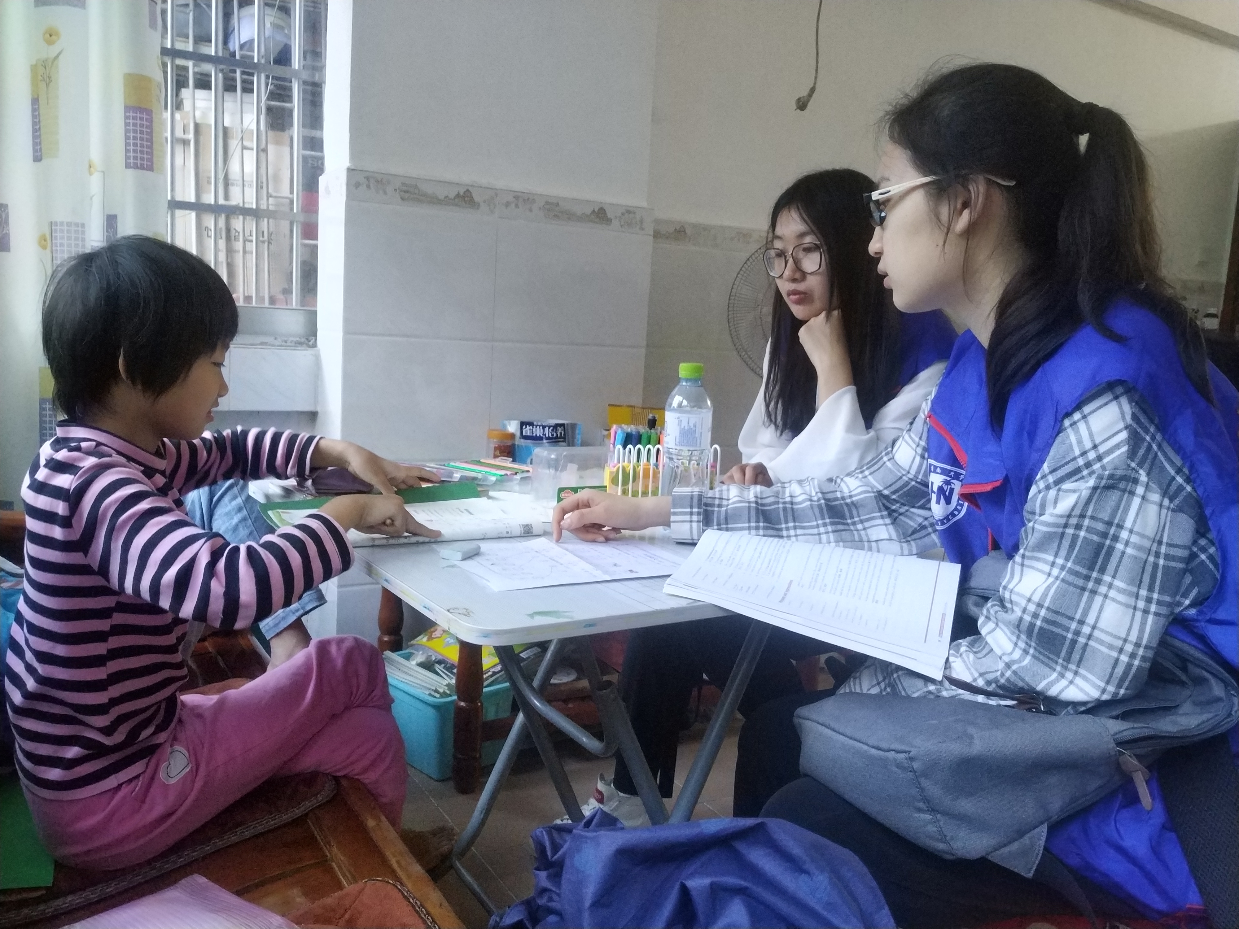 志愿者帮孩子检查作业