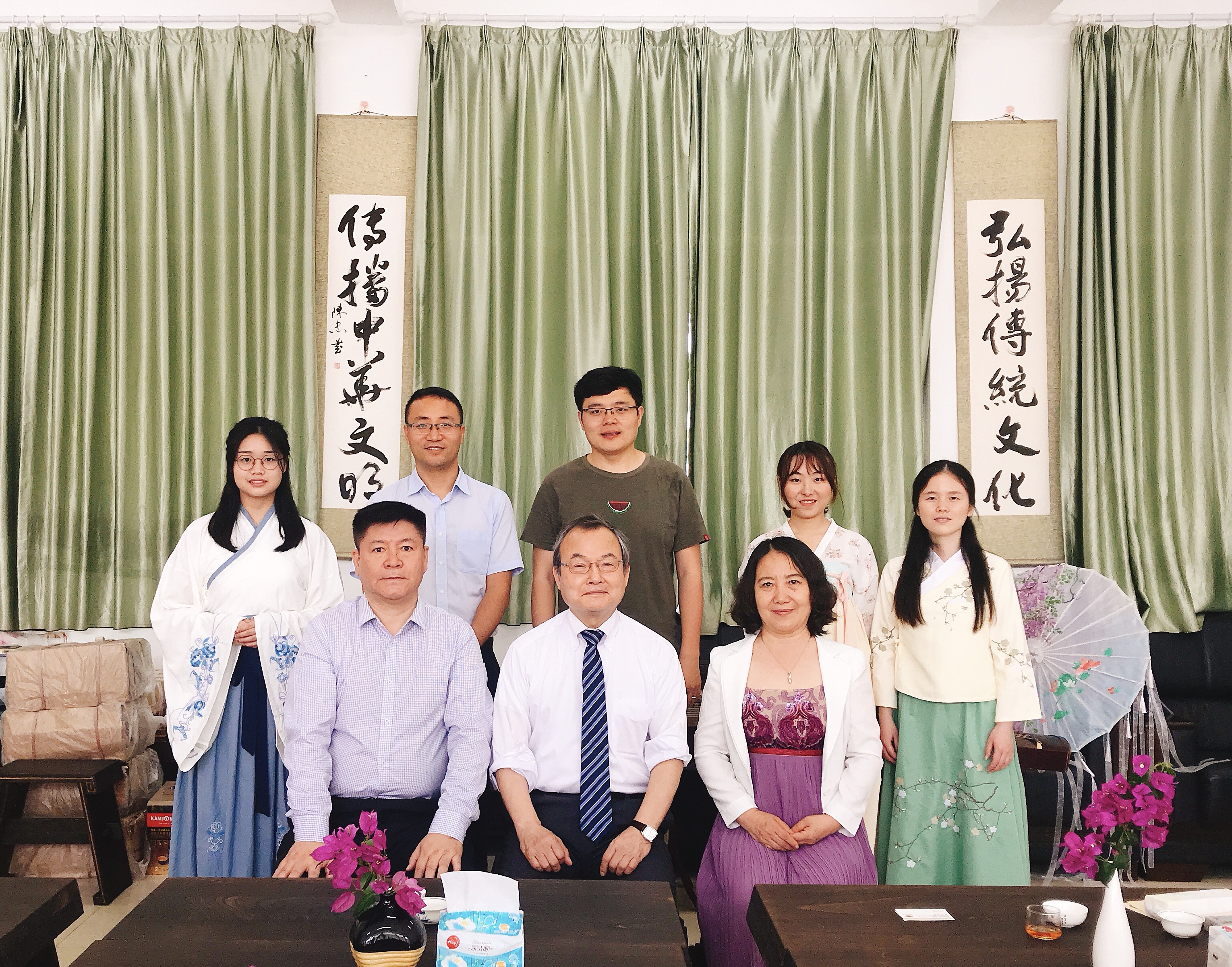 学工办公衍峰老师、王森森老师以及国学社部门优秀学生陪同出席洽谈会。
