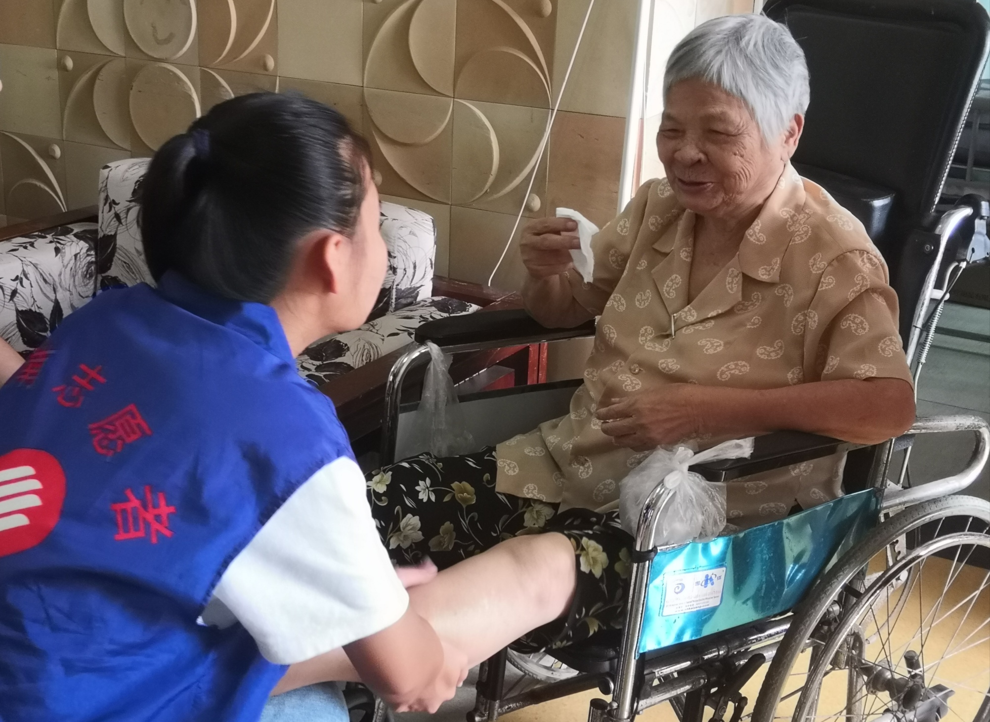 志愿者们在听带队人员讲明注意事项后,便迅速投入了工作。志愿者们提前到达活动地点,积极拖地、擦窗户、叠被子,为老人们打扫房间。从捶肩、捏腿、喂饭到聊天交谈,志愿者们用不同的方式给老人们带去了爱与关怀。在交谈中,志愿者们用自己的青春活泼为老人们带去了活力,他们也从老人们的丰富阅历中汲取到智慧。下午天气放晴,志愿者们帮助行动困难的老人下楼梯、小心翼翼地搀扶他们散步。