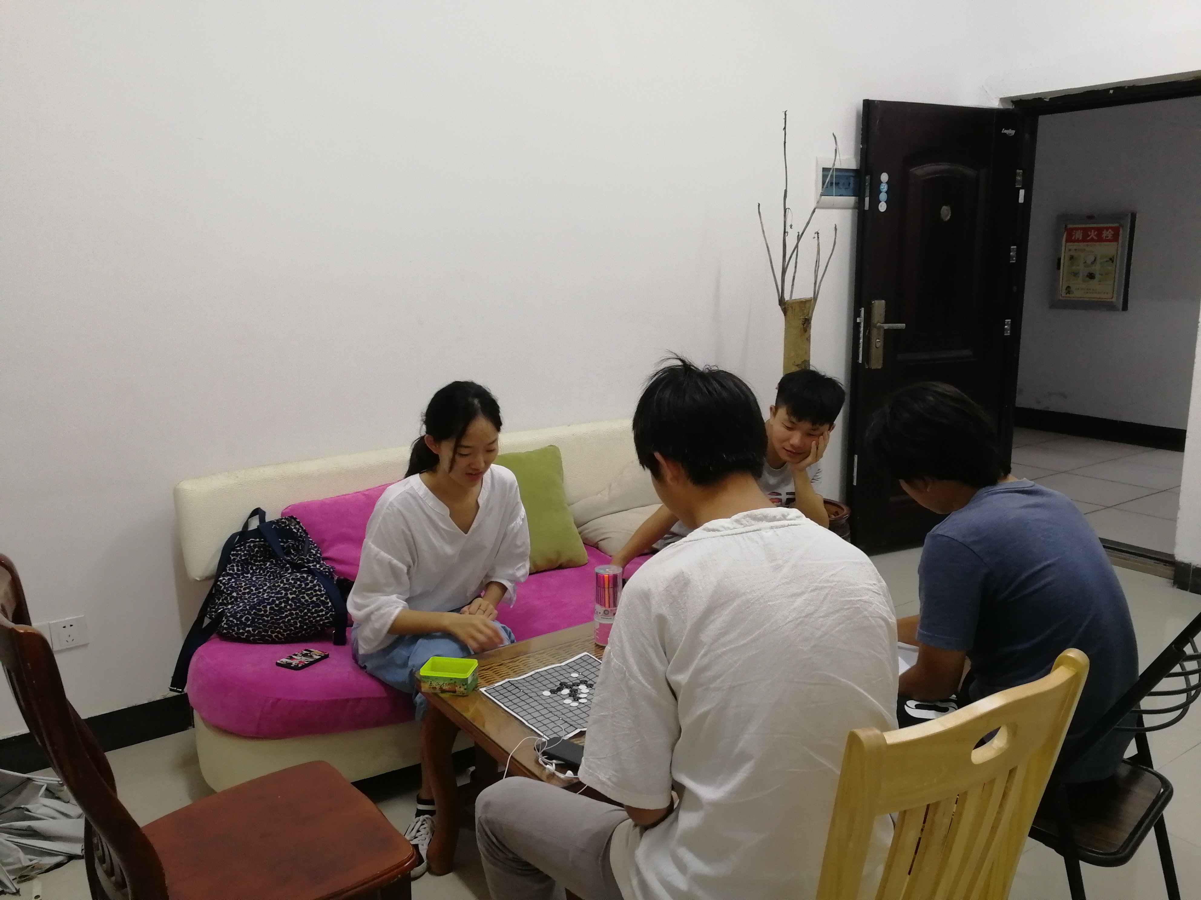活动开始,王老师跟同学们讲解关于5·25心理健康教育活动月相关情况,分享大学生常见的心理问题,并提出一些解决心理问题的建议;接着同学们分享自己存在的或发生在身边朋友的心理问题,同学间相互诉说和共同探讨,倾谈自己的想法;然后进入互动环节,环节分为五子棋交流和心理漫画设计两个部分,首先是五子棋交流环节,每组两个同学,共两个小组,同学间通过走棋互相猜测对方心理,从而增进心灵间交流;其次是漫画设计环节,每组一个同学,共四个小组,每个同学用彩笔在一张A4纸上画出心里所想的画面,小组之间通过画面猜测每个同学想表达的意思,从而促进同学之间的交流和互动。