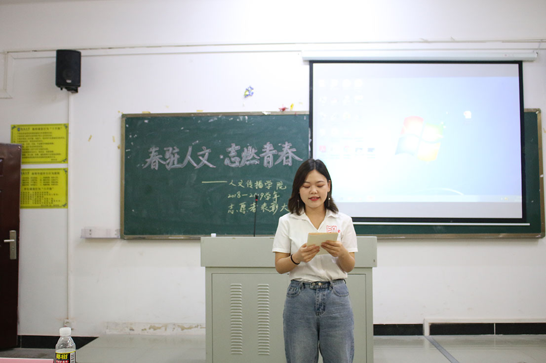 大会在文工团同学们的精彩舞蹈表演后拉开帷幕。随后,大会进入中心议程——表彰人文传播学院2018—2019年度志愿服务先进集体与个人。张嘉怡等12名志愿者被授予“院级志愿服务标兵”称号,管煜等35名同学被授予“院级优秀志愿者”称号,18级中国汉语言文学类四班被授予“院级志愿服务先进集体”奖。情色小说