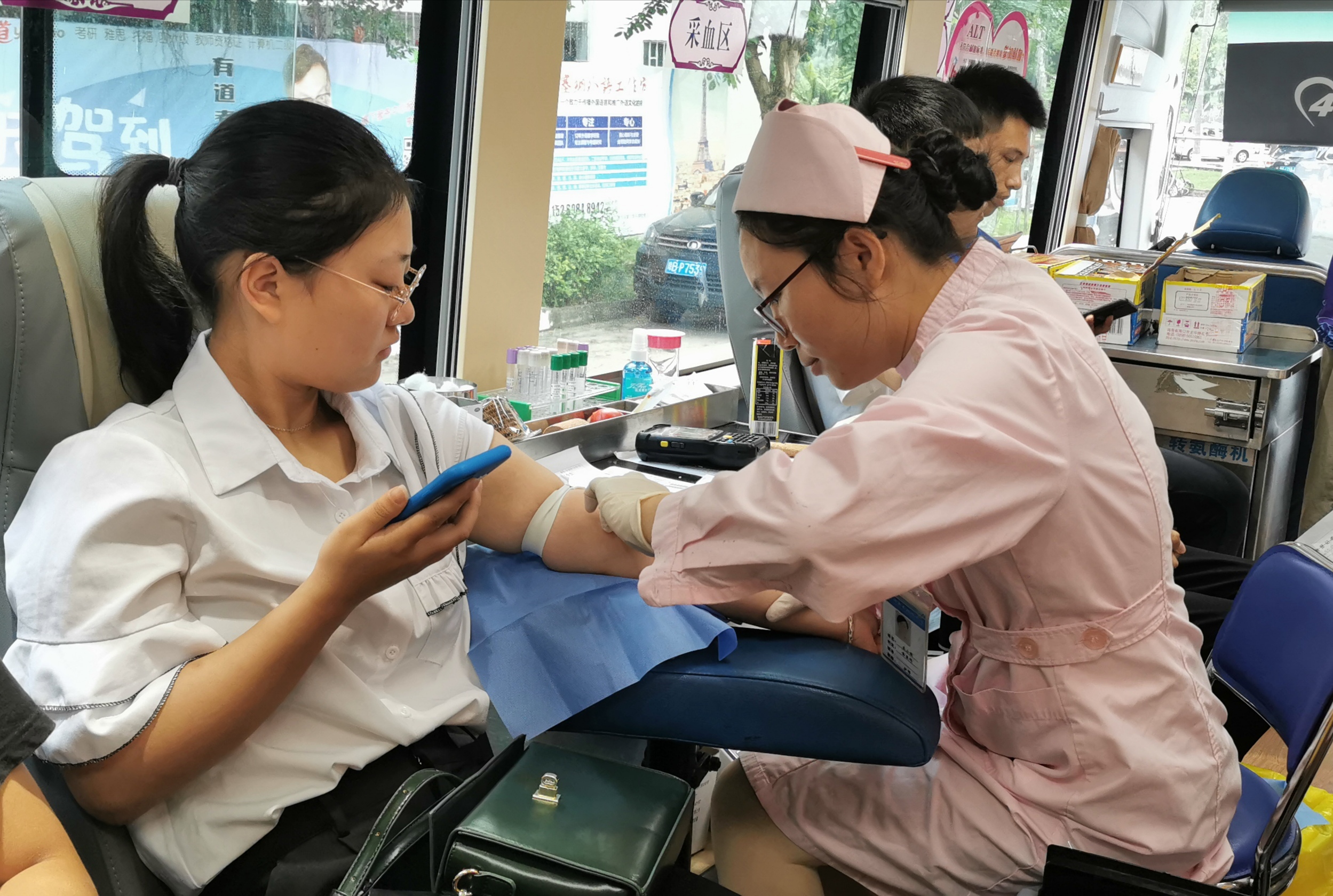 同学们献血中