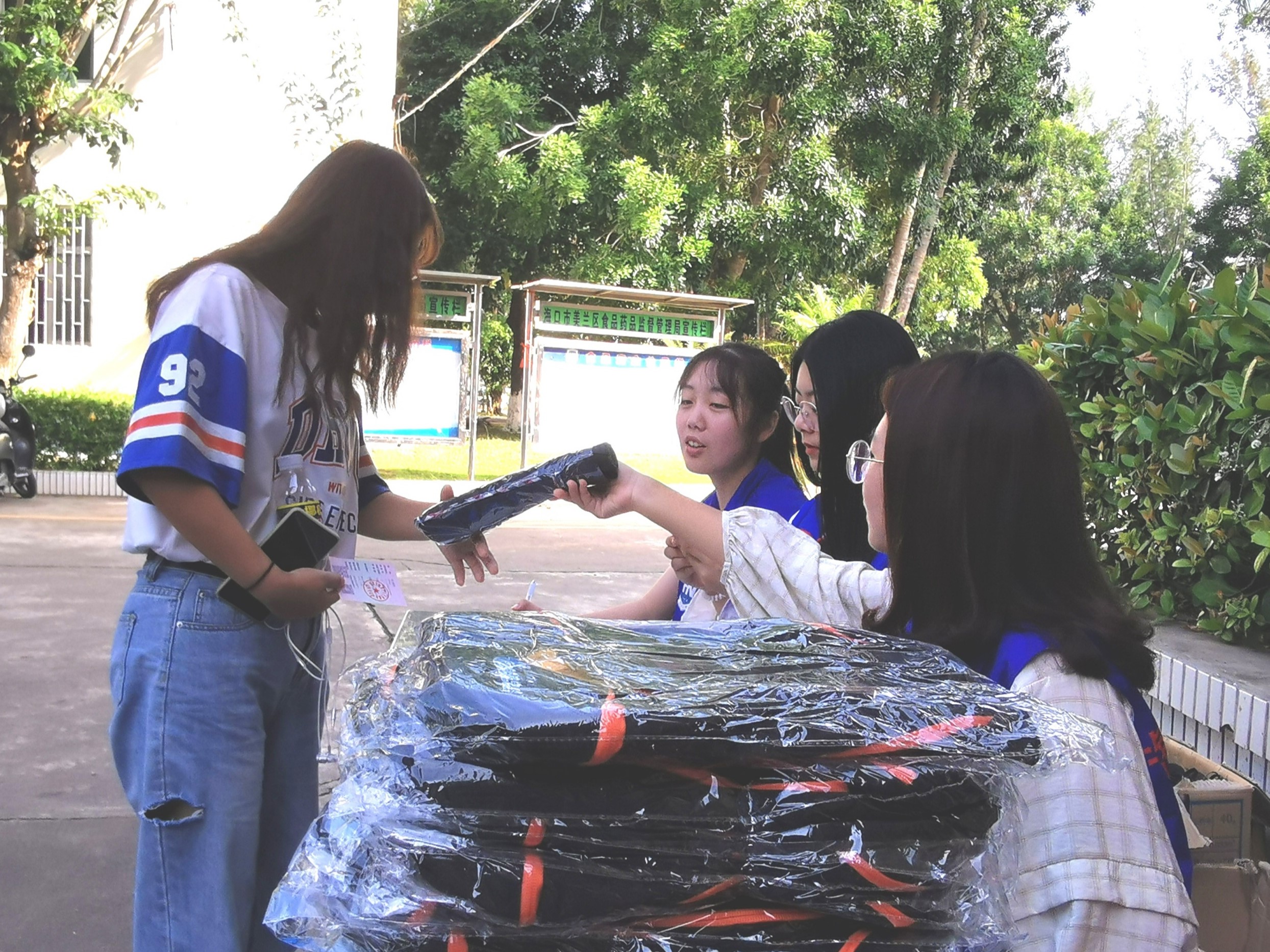志愿者整理桌子
