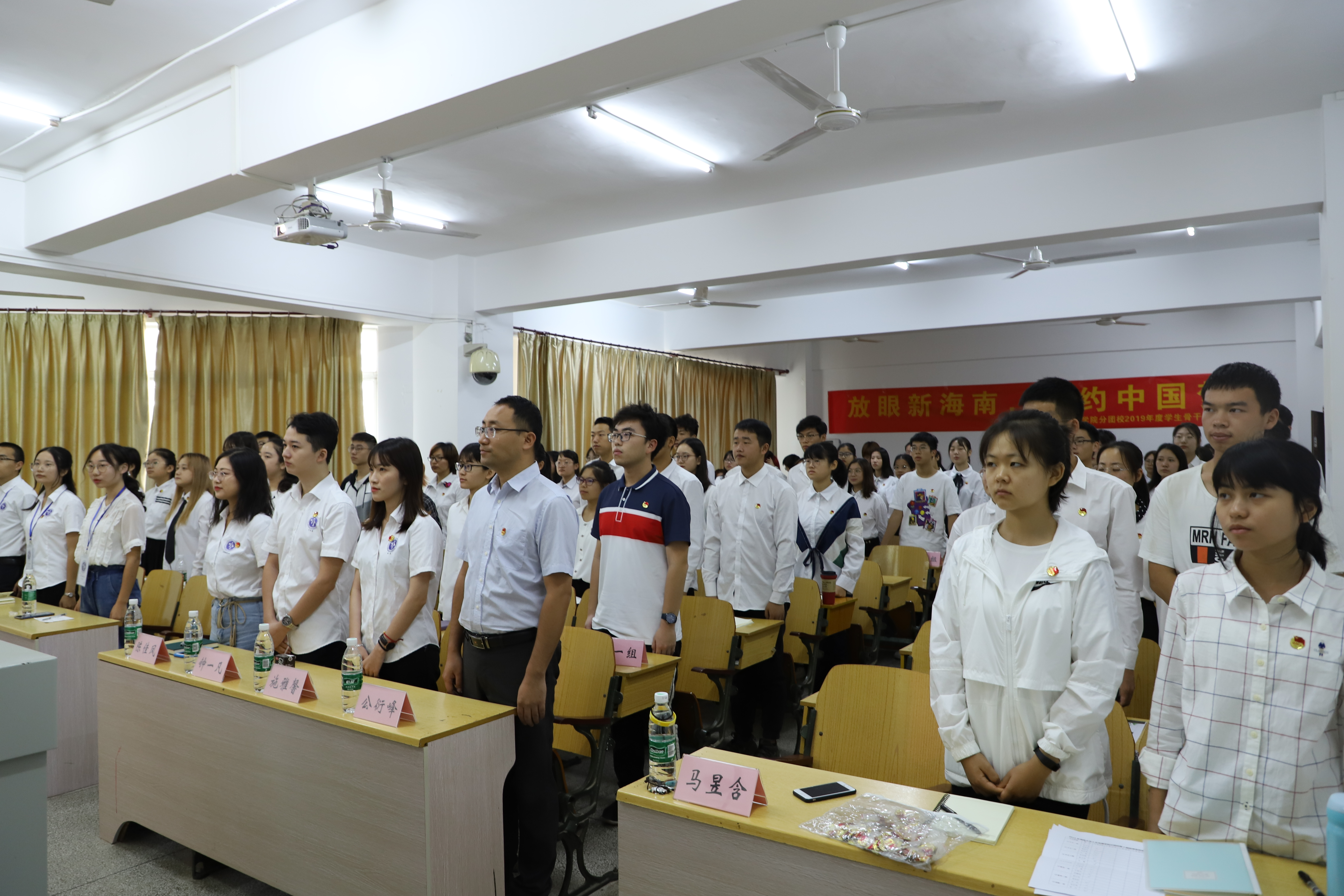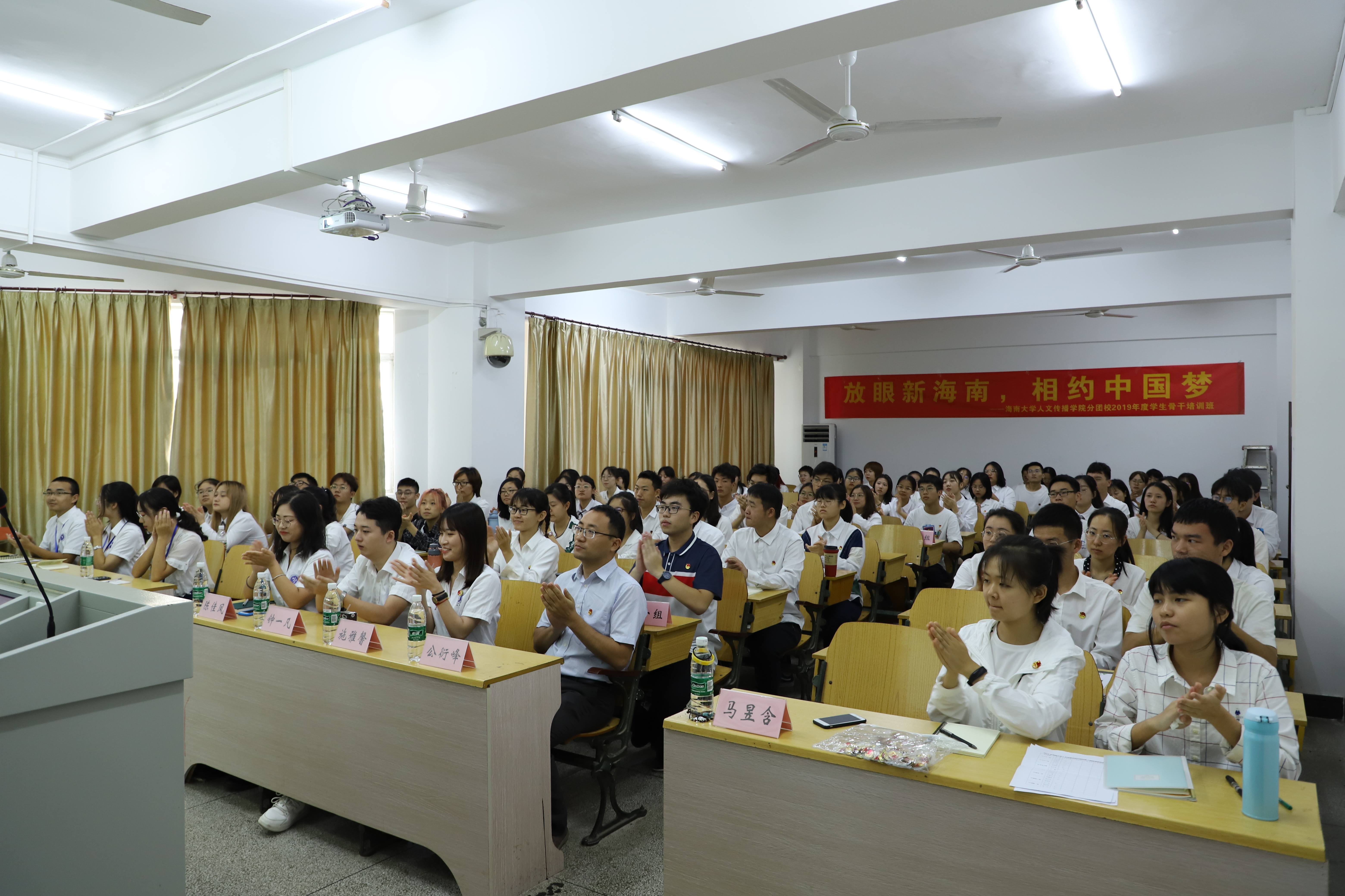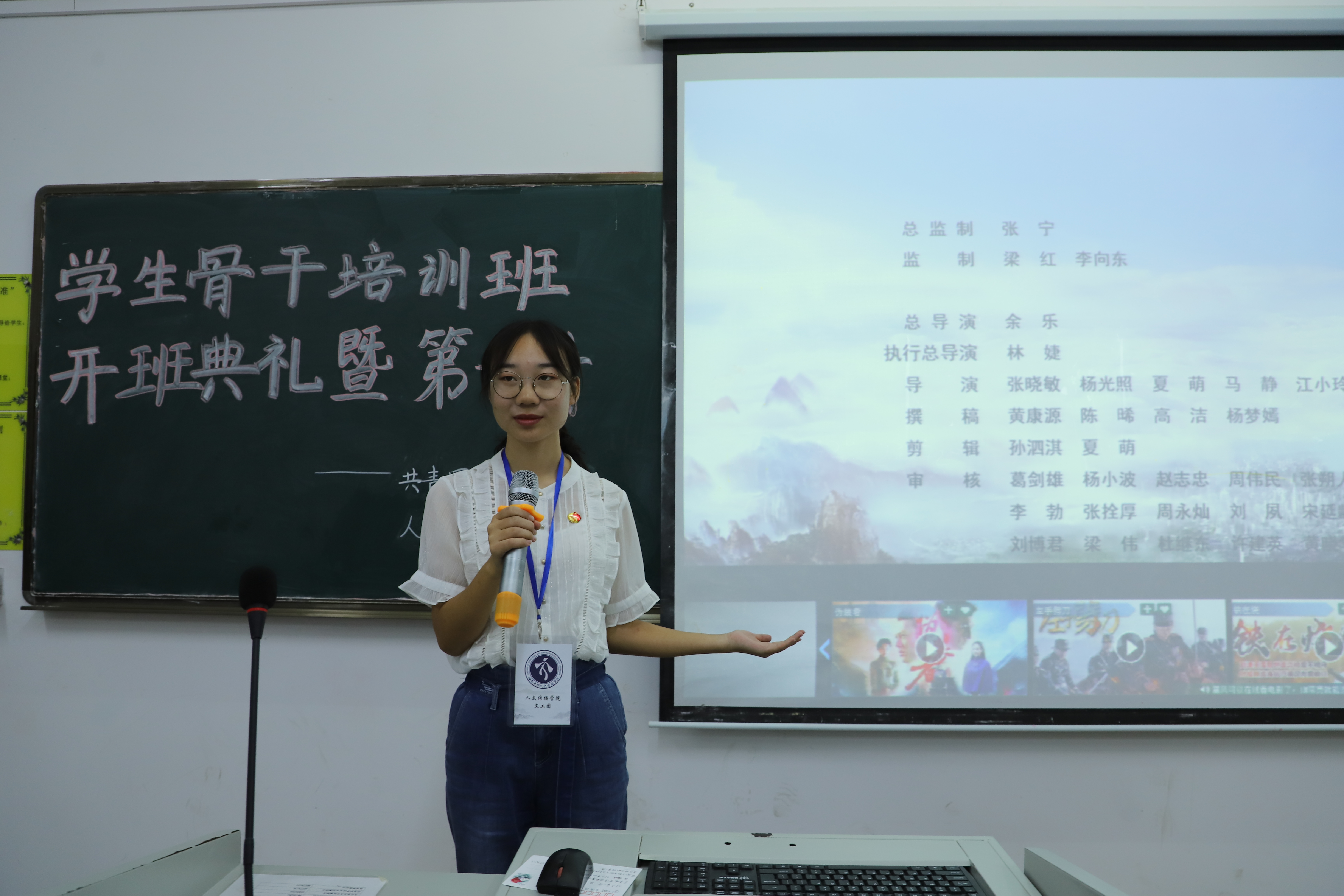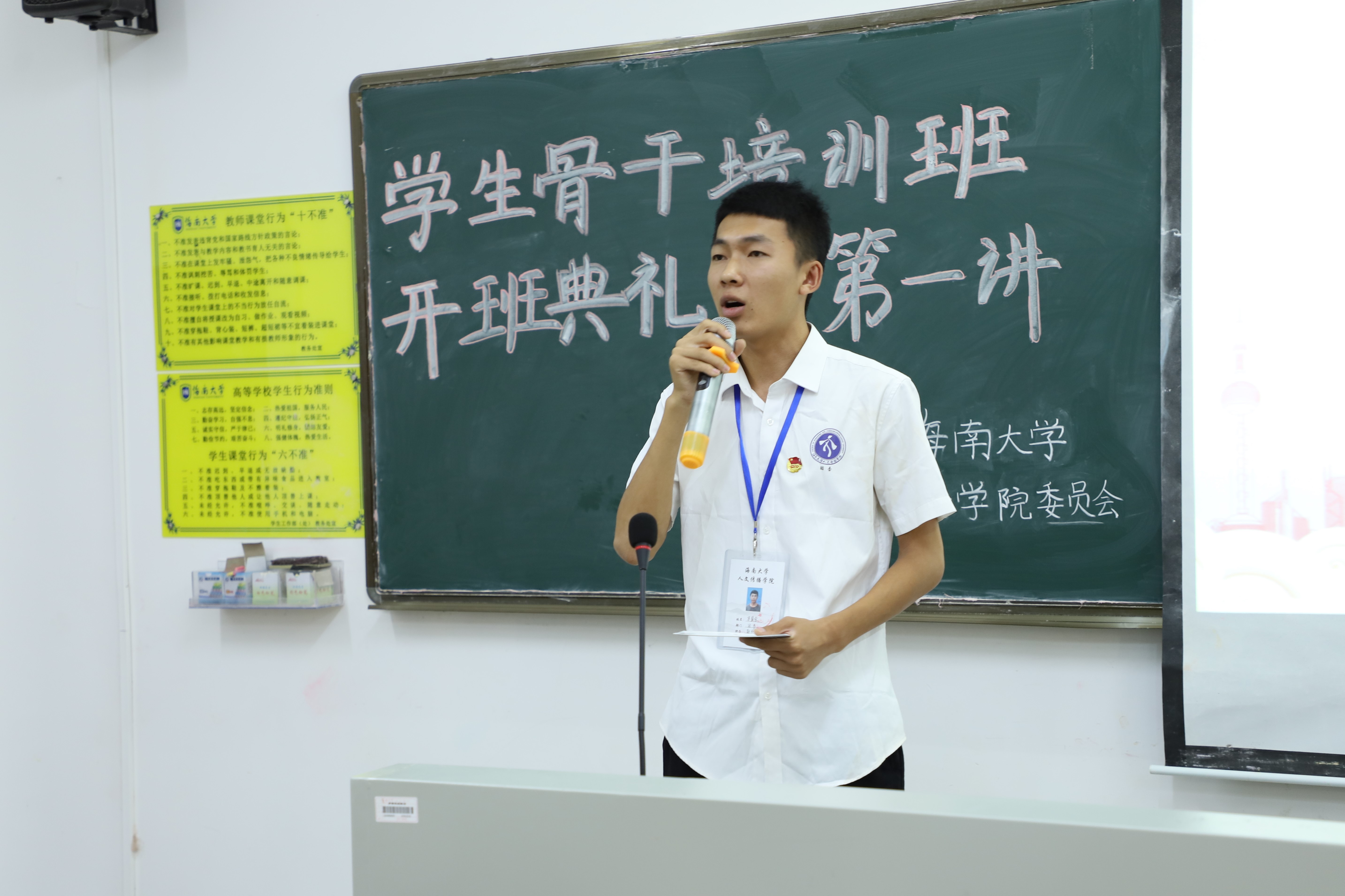 主持人马昱含上台依次介绍到场嘉宾并宣布人文传播学院分团校学生骨干培训班正式开班。