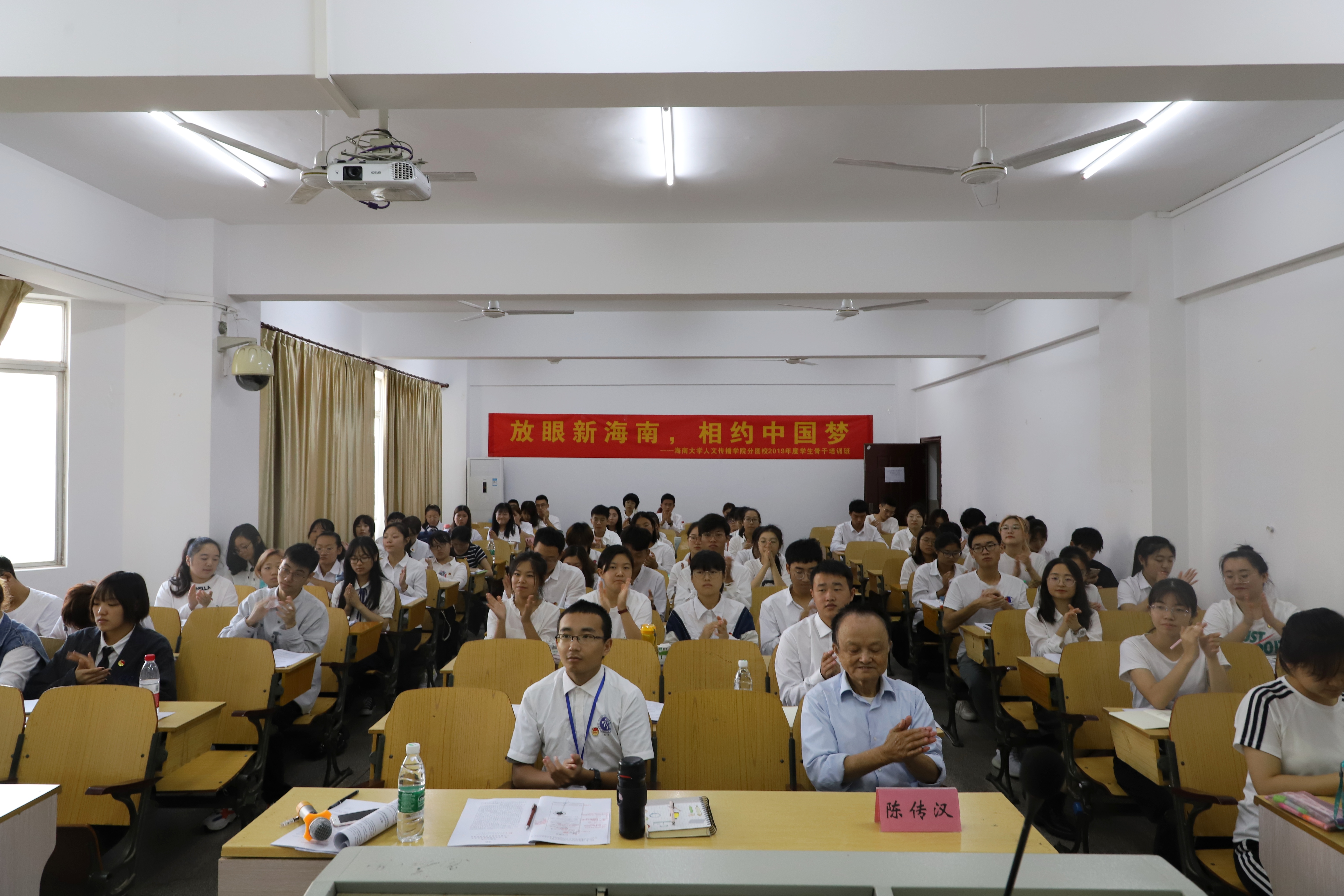 本次培训会,是系列学生骨干培训会的第四期,旨在教授公文写作方法,提高学生骨干的工作能力。会议伊始,团委学生副书记马昱含上台主持并简要介绍了陈传汉老师。随后在同学们的热烈掌声中,陈老师款步登台进行公文写作教学。陈老师曾任《情色小说