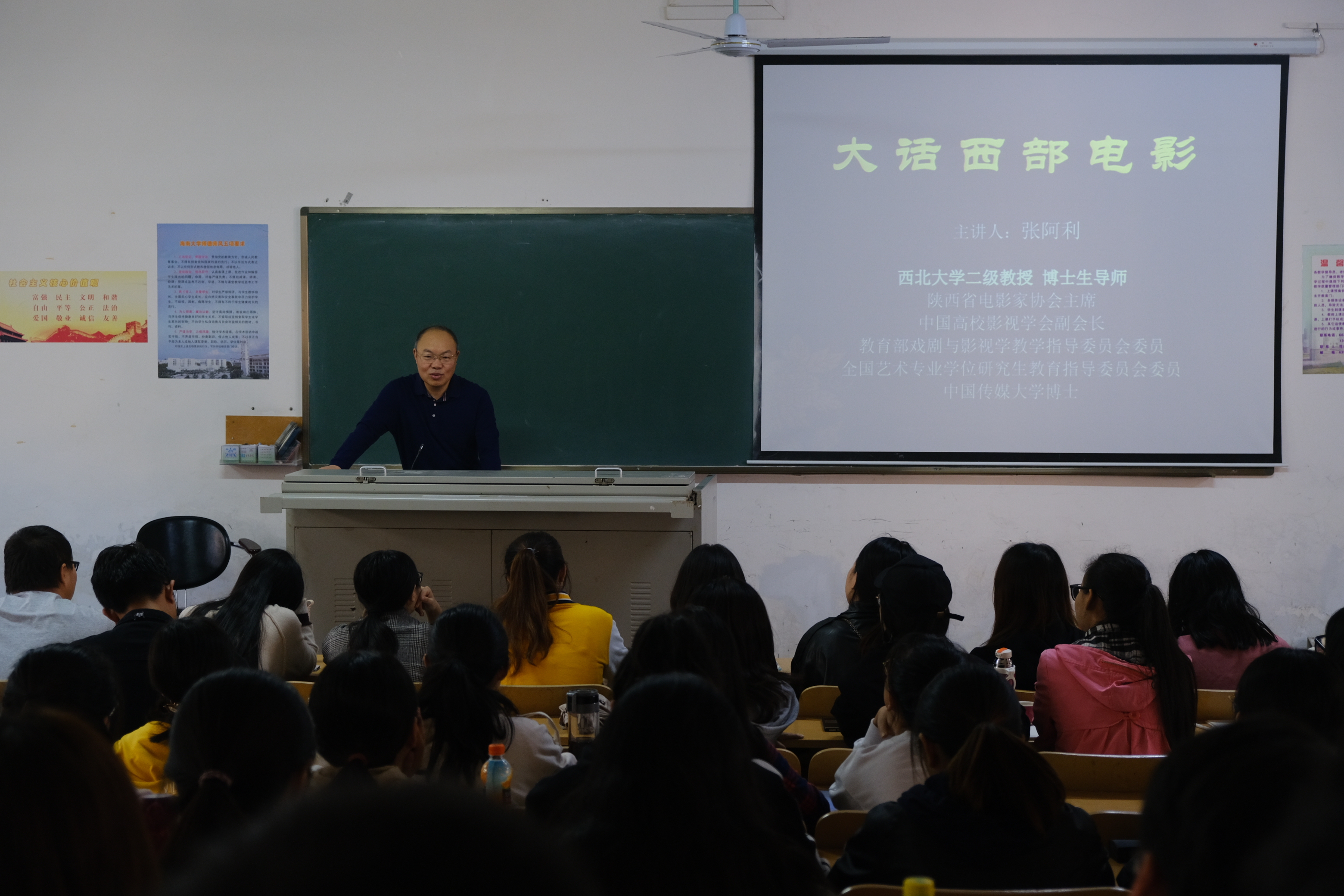 海甸校区第二教学楼111教室顺利开展。本次课程由西北大学张阿利教授主讲,17至18级全体戏剧影视文学专业同学参加本次讲座。