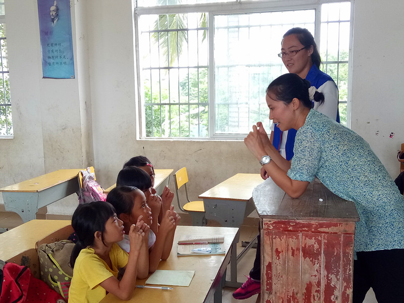 志愿者为孩子们辅导功课