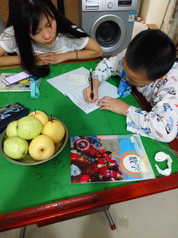 志愿者辅导孩子认真学习
