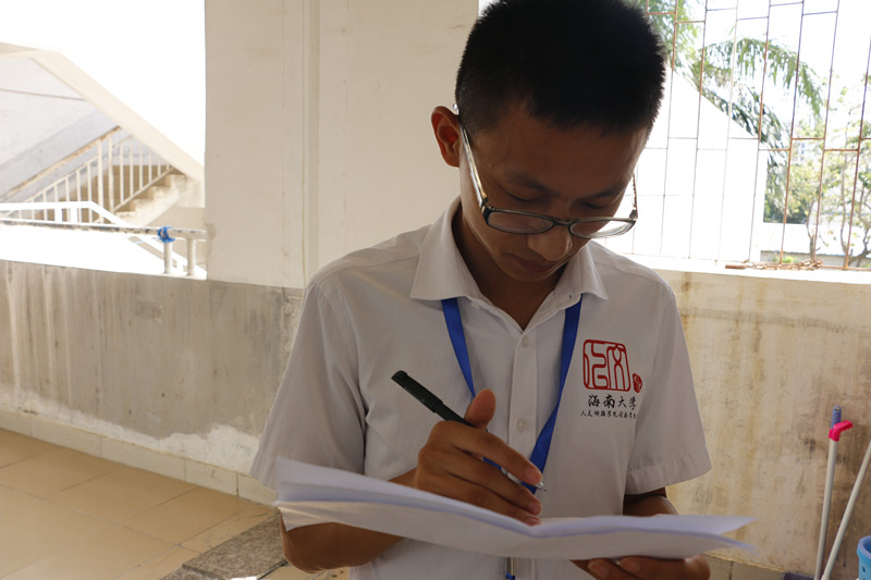 学生干部认真记录宿舍情况