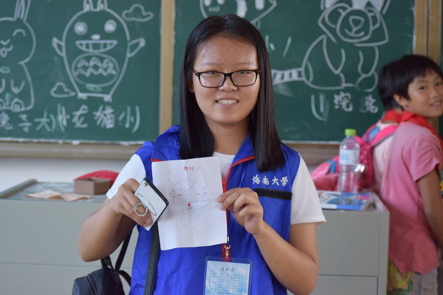 志愿者展示孩子们送给自己的礼物
