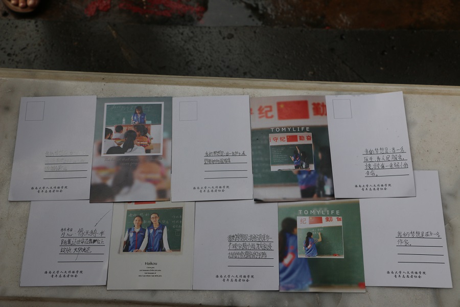 (海甸校区)北门出发,前往新联小学开展最后一次的帮教活动。经历了六期志愿活动的志愿者们,与孩子们已经建立了深厚的友谊。回顾以往的帮教活动,还记得第一期时志愿者与孩子们相见前紧张的神色;还记得熟悉之后的志愿者自由的和与孩子们自在地聊天谈心和玩耍;更不会忘记,每次分别时,志愿者与孩子们依依不舍的场景。为了纪念“七彩阳光.七彩梦想”活动完美落下帷幕,青协宣传部还特意为新联小学的孩子们以及参与活动的志愿者们准备了精心制作的活动明信片。活动中,志愿者们发放明信片,并要求孩子们在明信片上写上自己的梦想。所有的孩子们都认真思考,并将自己的梦想工整地书写在明信片上。小小的明信片,承载着明天的希望,承载着志愿者对于孩子们深深地祝福。22日下午五点,最后一期新联帮教活动圆满结束。