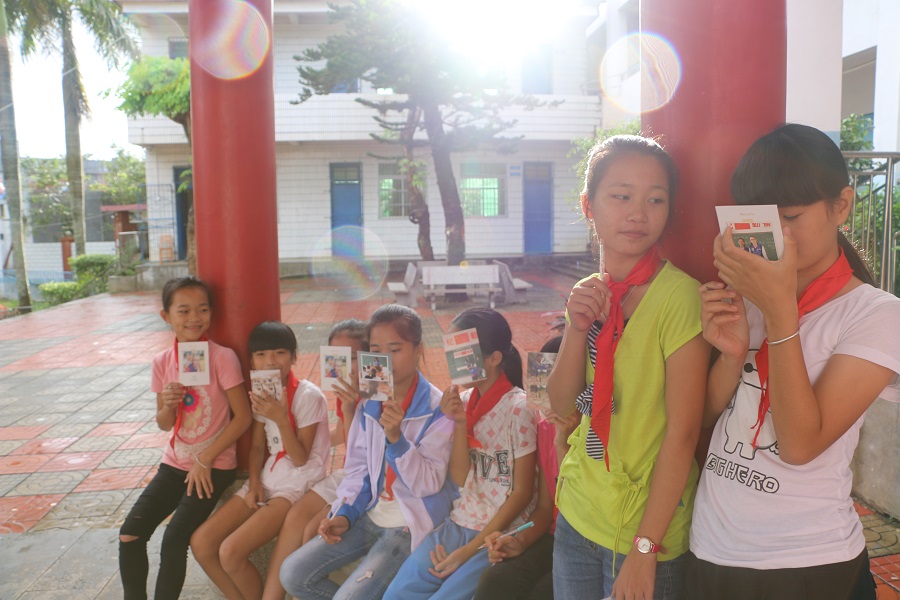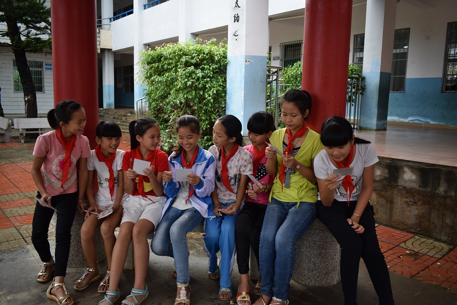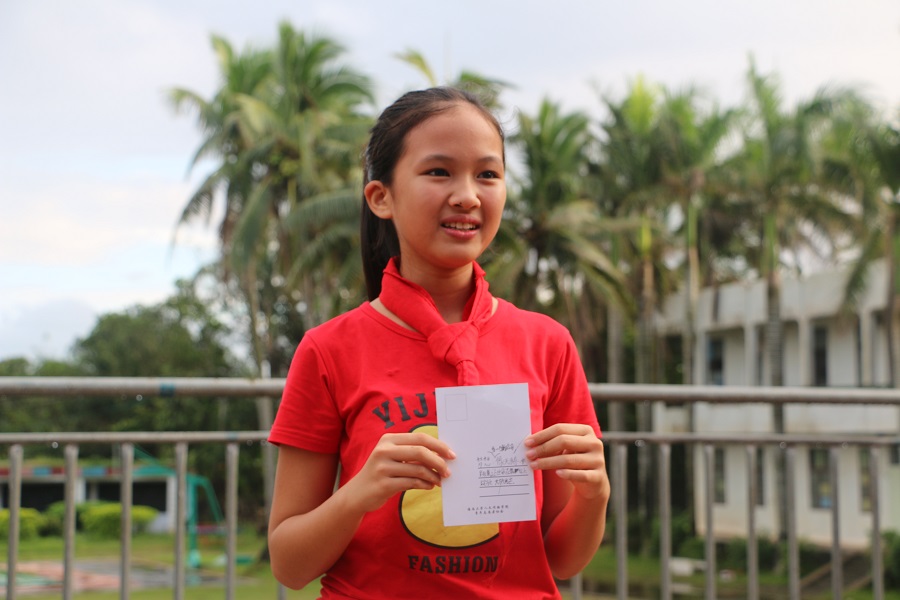 收到明信片孩子们开心的笑脸