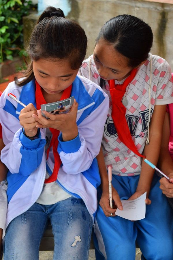 孩子们认真写明信片