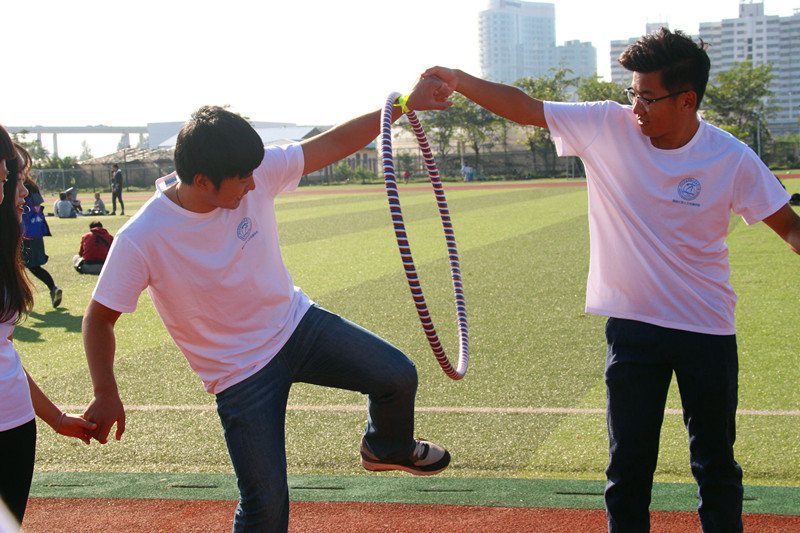 团委书记熊文军老师为活动致辞。熊老师希望14级、15级的同学要充分利用这次机会将自己从紧张的学习与工作中适当抽离出来,通过参与轻松活泼的游戏来调整自己的状态;同时,也要珍惜这次与来自不同学生组织和不同班级的同学交流的机会,培养深厚的友谊。之后,主持人宣布活动正式开始。参与人员通过抽签组成了参与活动的三支队伍,即龟队、兔队和人队。全场共有十个站点,每个站点都会有一个游戏,如:万里长城、步调一致等。三队每到达一站就要挑战这一站所对应的游戏。三队每完成一个游戏就会有一次抽取卡牌的机会。这些卡牌可能是奖励也有可能是惩罚,最先到达终点的队伍获得冠军,并以此方法决定第二、三名。
