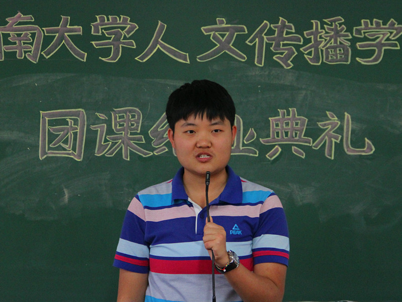 在此次结业典礼主持人团委宣传部干事彭丽桦同学向参加此次培训的学生干部们介绍了到场嘉宾以及活动流程后,本次结业典礼正式开始。首先,熊文军老师发表了团校结课总结。熊老师指出,本轮团校培训为各学生干部提供了许多工作经验和学习方法,但也存在可以优化和改进的不足之处。同时,熊老师希望学生干部们在日常工作实践中多和同学们学习交流,并能在此次开设的课程中汲取营养并施用在工作和学习中。最后熊老师强调了实践的重要性,团校的结业只代表一次阶段性的集中学习,更是新的学习和实践的起点。接着,2016级中文四班团支书陈楚佳同学作为优秀学员代表发言,她将团课中所学习到的内容总结为转变和提高这两个词,并且表示,此次团课学习使她在自我认知和团队协作等方面的能力都得到了锻炼和发展。最后,熊文军老师为此次团课培训中表现出色的优秀学员颁奖表彰,本次结业典礼在全体同学嘹亮的共青团歌中圆满落幕。