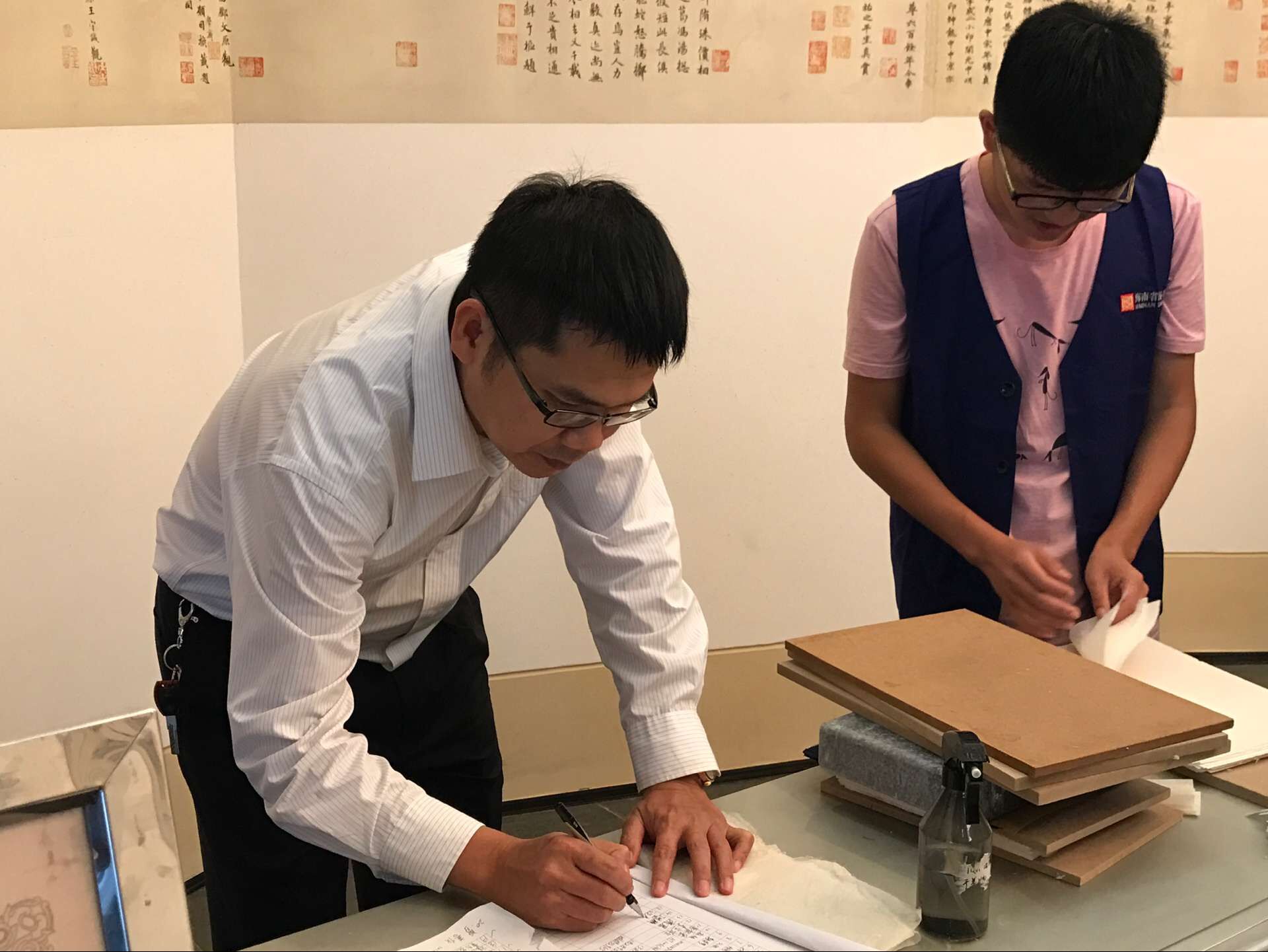 图书管理人员讲解制作古籍的流程