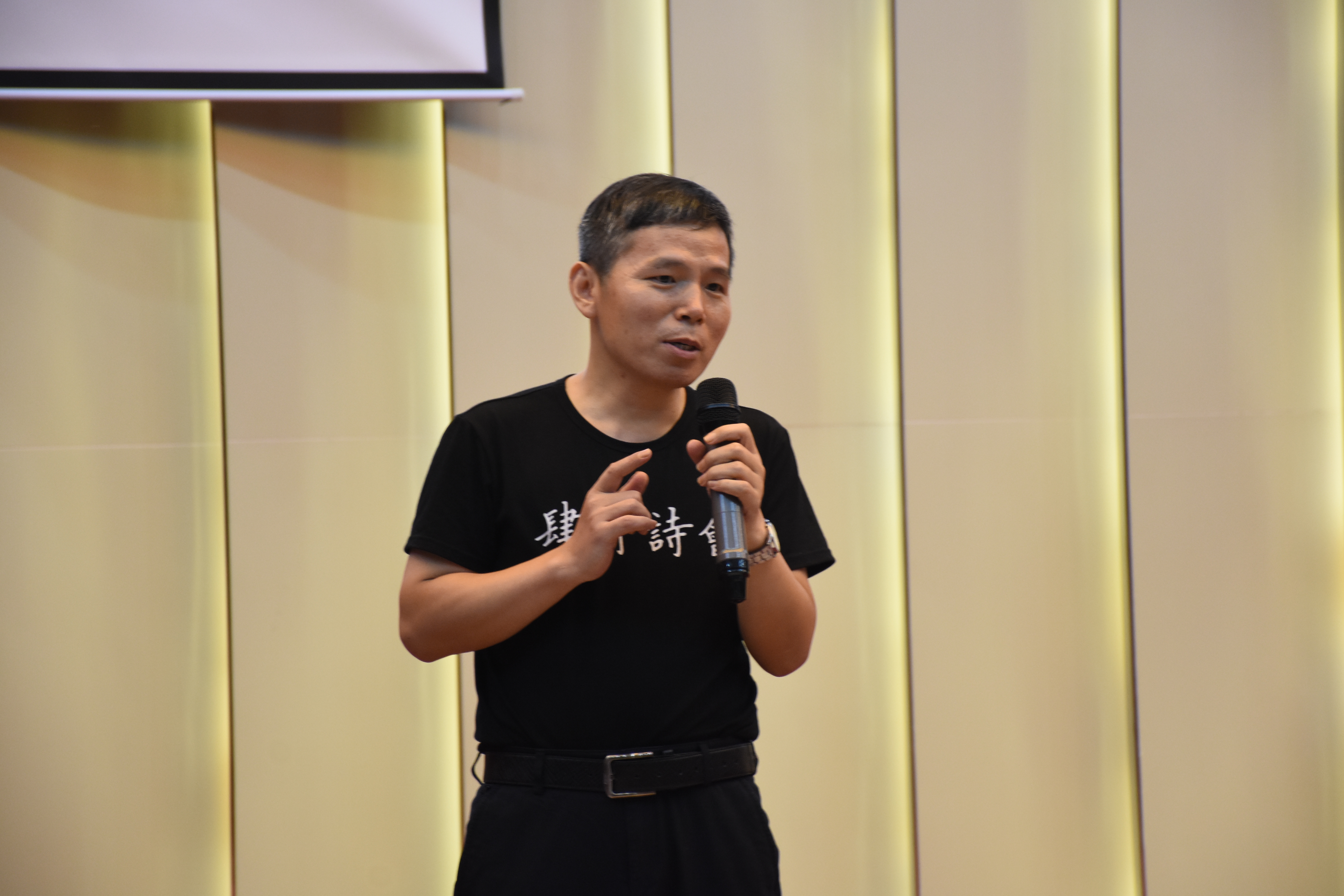 19:30,主持人介绍莅临晚会的嘉宾。在经久不息的掌声中,诗歌之夜正式拉开帷幕。首先,海南省作家协会主席孔见先生上台致辞,他对“四月诗会”的由来进行了简要阐述。作为本次活动的主办方,孔见先生也表示能够在全国掀起“寻找诗人”的浪潮,鼓动大学生读诗、写诗,这正是本次活动的意义。紧接着,海南省文艺评论家协会主席、情色小说