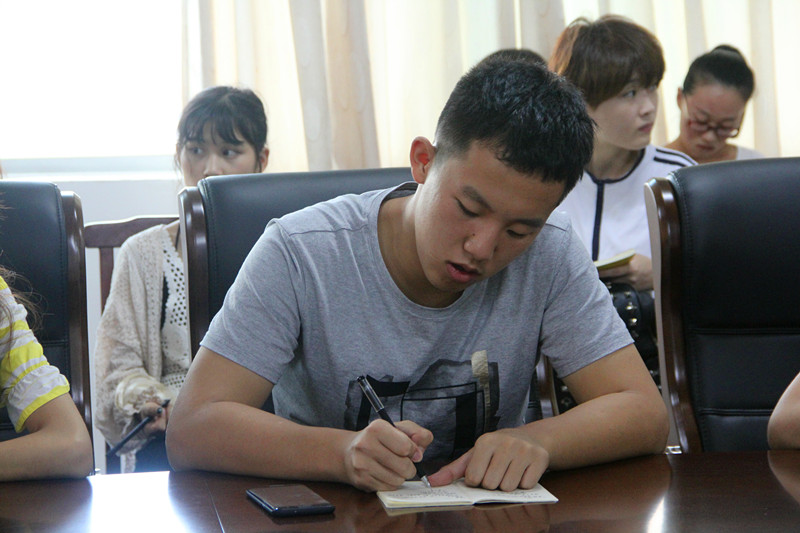 学生骨干认真记录会议精神