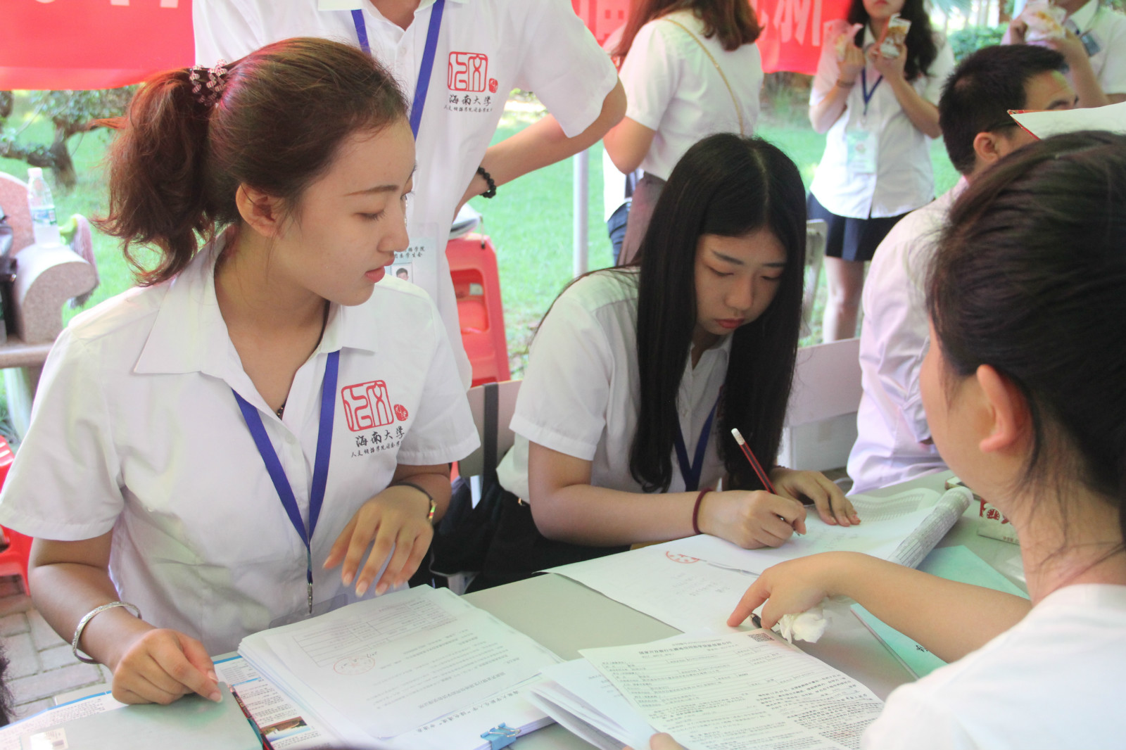 迎新接待点慰问。学院党委书记华世佳、副书记孙晓媛对迎新报到接待工作亲自过问,做出安排,并亲临迎新接待点进行指导。截止9月10日下午5点,报到新生402人,报到率98%,请假2人,圆满完成迎新工作任务。
