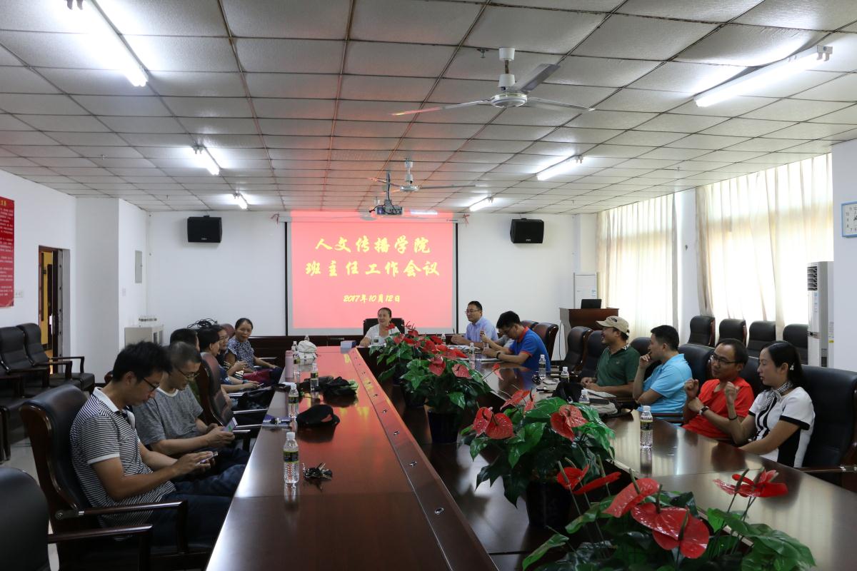 安全稳定工作会议精神,根据《关于做好学生教育管理工作迎接党的十九大召开的通知》、《关于组织各学院开展电气火灾综合治理工作的实施方案》等文件,布置了近期学院的学生工作,尤其是营造良好氛围,确保学院学生安全稳定的重要举措。她在会上强调,各班班主任要重视班级工作中出现的相关问题,加强班主任与班委沟通,解决同学们的实际问题。班主任要尤其注意学生安全问题,杜绝宿舍大功率用电器、晚归、校外住宿等学校重点强调的违纪行为。另一方面,班主任老师要关心班级同学情况,尤其是家庭困难、学习困难同学,坚持做到“绝不让任何一个同学因家庭困难而失学”,对学习困难学生进行积极帮扶,保证不让一个同学掉队。随后,各位班主任就工作中遇到的问题与自己总结的经验在会场进行积极交流和深入讨论,会议气氛十分热烈。 随后,公衍峰老师和熊文军老师也就班主任提出的问题,进行了具体解答,就辅导员和班主任工作的无缝衔接进行了深入交流。本次会议的顺利召开必将为营造良好的氛围,打造安全稳定的校园环境起到积极的作用。 2017年10月12日