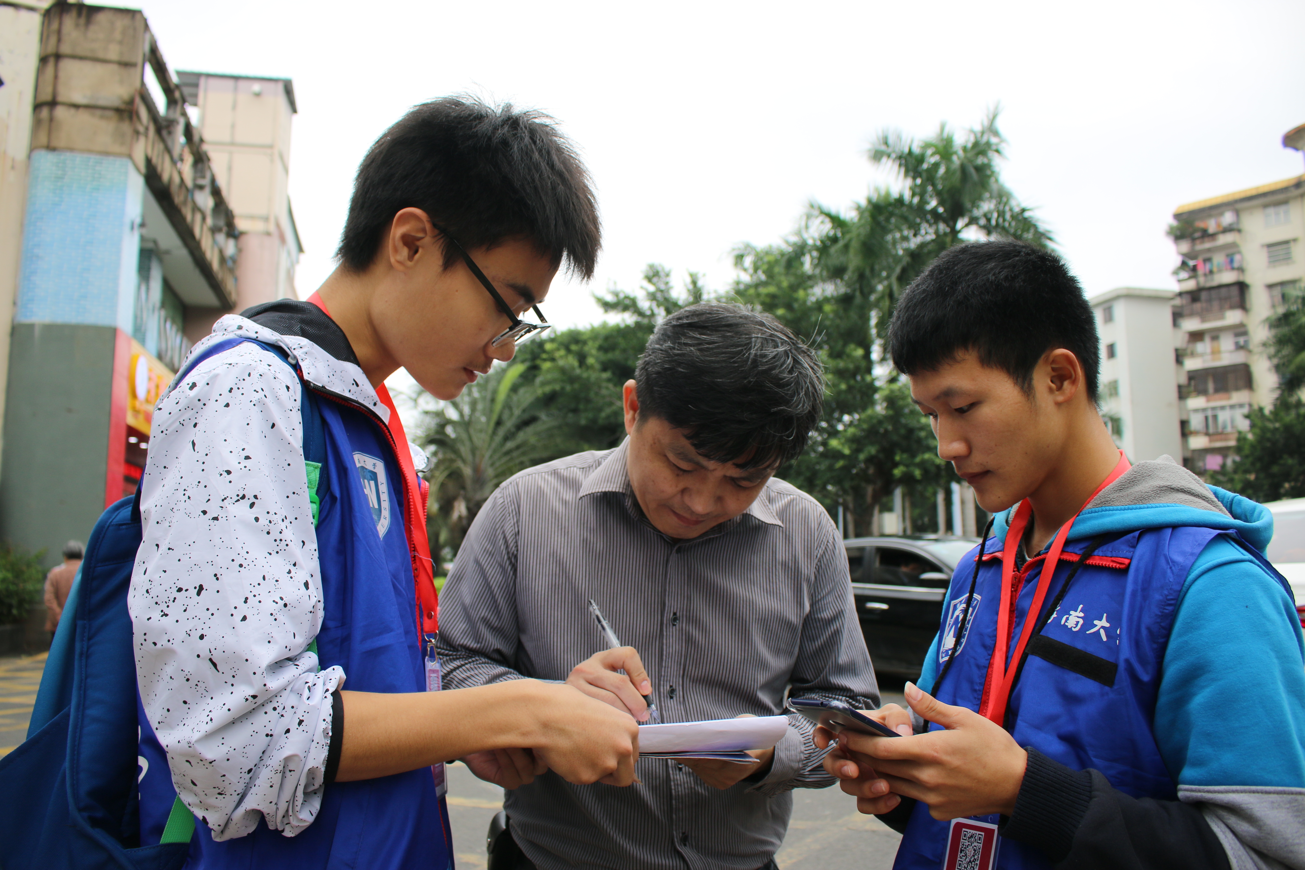 (城西校区)集合并签到,一同乘坐公交车前往海秀中路邮政营业厅。到达目的地后,由青协工作人员为志愿者们详细的讲解了劝募的具体流程和活动注意事项,为他们分发了带有二维码的工作证、活动宣传单、以及劝募成功后需要填写的三联单等物品。之后,志愿者们两人一组,前往附近的街道开展劝募活动。他们耐心地向每一位过往的路人介绍本次活动的内容及意义,并号召大家进行募捐。尽管在劝募过程中,志愿者们被拒绝、被质疑,但这并没有磨灭志愿者们的初心与信念。在海口市的街头巷尾,我们依然能看到志愿者们的小小身影。期间,有位志愿者在经历多次拒绝后,终于劝募成功,她表示:“真没想到我今天能成功,看到叔叔扫码支付100元的善款时,我超级激动,比抽中奖还幸运,对于这样的好心人,除了感谢还是感谢……”在这场为爱的大作战中,志愿者们用最切实的行动与最真挚的感情默默付出着。中午,在志愿者们的齐心协力和社会爱心人士的无私奉献下,劝募活动圆满完成。