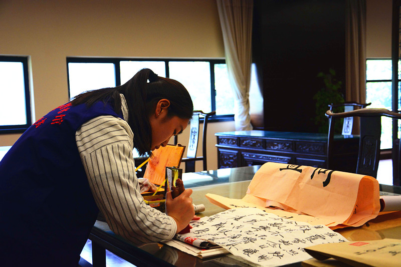 在活动进行中,志愿者们也为前来寻求帮助的读者进行了耐心服务,带领他们寻找书籍,使用自助借阅设备,并解决读者们的相关疑问。装订工作完成后,志愿者们参与了汉字书写活动,向大家展示了汉字的魅力。下午五点,活动取得圆满结束。
