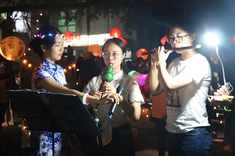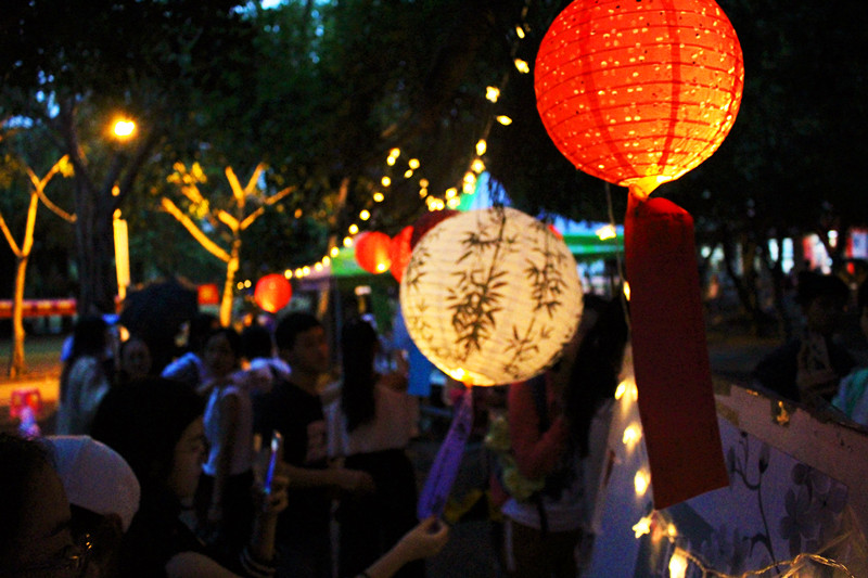 19:00点整,由院学生会干部精心准备的花灯一齐点亮,主持人向到场的老师、同学表达了热烈的欢迎和诚挚的谢意,并向大家介绍了灯会活动的主题、各项小游戏与猜灯谜的规则,以及礼品的兑换方式。在现场观众们与主持人一起倒计时5秒后,四月诗会之“人生若只如初见·文院灯会”正式拉开帷幕,大榕树上挂的盏盏灯笼随风摇曳,树下的各色发光气球与发光头饰华丽眩目,耀眼迷人,迷蒙细雨挡不住城西师生赏灯游玩的热情。大榕树下,国学社成员身着汉服为游人引路,笛箫协会在现场演奏传统民族乐曲给大家助兴,一些游玩的同学自发现场献唱,引得路人驻足喝彩,将场上气氛推向了一个小高潮。21:00点整,备受众人期待的灯会大抽奖准时开始。由人文传播学院学生会主席团及其他兄弟学院主席抽取获奖号码并为中奖同学颁奖,随着一波又一波的惊呼,各式花灯等礼品被依次送出,自此,文院灯会气氛达到了最高点。最后,由主持人进行活动总结,主题灯会到此结束。