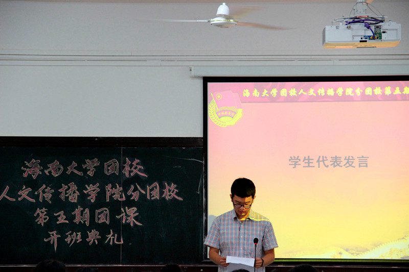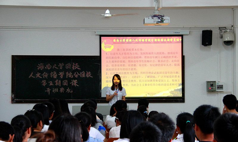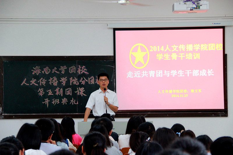 团校人文传播学院分团校章程》及成绩考核办法,明确团校培训的任务。接下来来自团委宣传部石中甫同学作为本期学员代表发言,熊文军老师讲话对全体学员作出要求并宣布本期大学生骨干培训班正式开班。开班典礼在全体起立共唱共青团团歌声中落下帷幕。 开班典礼后,熊文军老师结合团校的学习任务和团学工作实际作了题为“走近共青团和学生干部成长”的第一讲团课。在课堂上,熊文军老师带领广大学员回顾了中国共青团的创建历程和光辉历史,引领学员明确了共青团的性质与职能,鼓励学员作为新时代的青年应继承和发扬共青团的光荣传统,朝气蓬勃、实事求是的开展工作。接下来结合学员的特点,熊老师还围绕学生干部的角色培养、能力要求等学生干部成长的话题与广大学员进行交流,引发了学员们的深入思考。 本期大学生骨干培训班学员主要来自学院团委学生会、青年志愿者协会大一学生干部及大一各班委、团支部的骨干成员。通过团课的学习,学员们深入了解了共青团的发展和历史任务,增强了身为共青团员的自豪感和责任感。
