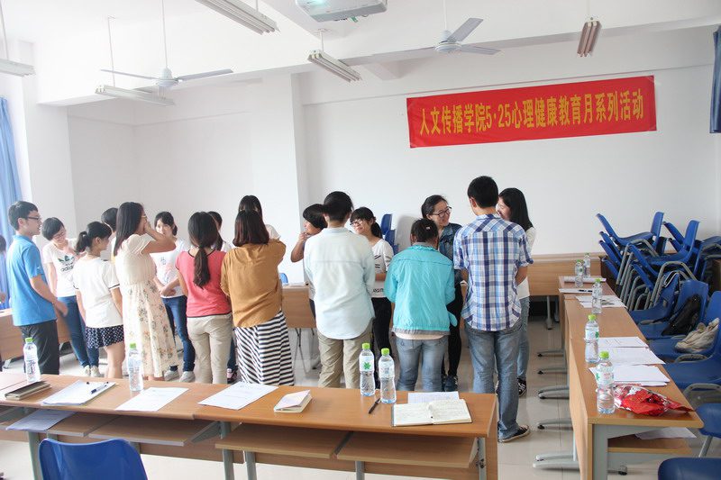2015年5·25心理健康教育活动月。 这次的活动促进了学院与心理委员间的交流,使心理委员明白了自己的责任义务,体现了学院对同学心理健康发展的关怀,也对5·25心理活动月的开展进行了良好的铺垫。 新闻部 朱文斐
