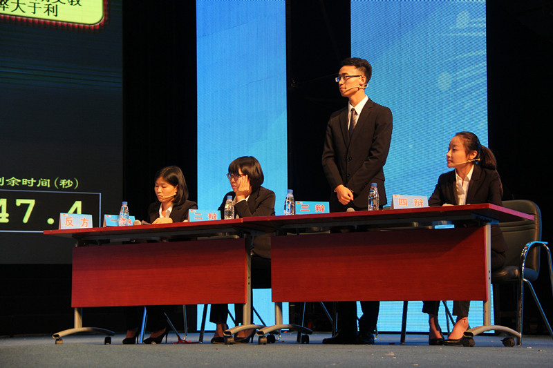 第二十二届辩论赛冠军争夺赛正式拉开帷幕。本场比赛由政治与公共管理学院“政之峰”辩论队对阵人文传播学院“文韬武略”辩论队。其中政治与公共管理学院为正方,他们的观点为“大学生短期支教利大于弊”。我方为反方,我方观点为“大学生短期支教弊大于利”。在第一环节开篇立论中,双方就自己的观点和立场进行了立论。政治与公共管理学院认为:“大学生短期支教做为我国农村教育的一种补充促进了农村地区教育的发展,富有热情和爱心的大学生能够利用寒暑假时期走进农村,为留守儿童带去关爱,这对我们大学生、对农村孩子、对中国农村教育事业来说是一件有益的事”。我方则认为:站在现实的角度去分析这个问题,我们看到大学生短期支教的弊端已经几乎掩盖了其有利的地方,主要包括大学生没有经过系统的培训不具备教学资格,其次农村地区孩子多为留守儿童,孩子的内心很脆弱,短期支教会造成大学生志愿者给孩子希望又毁掉希望的现象,不利于孩子健康心理的形成。在接下来的攻辩和自由辩环节中,双方就自己的观点进行了论证也对对方辩论中观点的错误提出反驳。尤其是在自由辩论环节,双方的攻势势均力敌,各有千秋,精彩纷呈。在总结陈词阶段,我方四辩辩手郝书晗对我方观点进行了阐述,她一改辩论赛时的果断勇猛,向大家娓娓道来。她的一番深情而又鞭辟入里的阐述与总结,感染着在场的每一个人。比赛结束后,评委老师也针对辩论中所出现的问题提出了自己的建议,并对辩论中双方的优点也给予了肯定。老师们的点评也让各位辩手受益匪浅。
