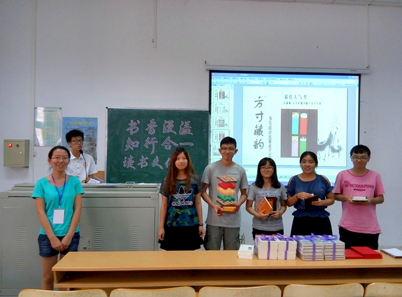 在读书讲座上,滕琪老师带领各位参加讲座的同学领略了苏东坡的人格魅力及其和陶诗的特点,同时滕老师向大家介绍了中国古人诗歌唱和的文化传统,结合东坡的和陶诗,教予大家如何体会古诗的韵味并在古人诗歌韵味的品味中感悟传统文化的精髓。讲座期间,同学们认真聆听,并与滕琪老师展开互动交流,滕琪老师也对同学们提出的问题作了一一解答。整场讲座,情理兼具,诗意流动。在本场读书讲座活动结束后,2015“书香漫溢,知行合一”读书文化节“书里书外”征文比赛及“方寸藏韵”书签设计大赛的颁奖仪式依时举行,同时现场对“方寸藏韵”书签设计大赛优秀作品进行了展示,伴随着颁奖仪式的结束,历时一个多月的2015“书香漫溢、知行合一”读书文化节画上了圆满的句号。