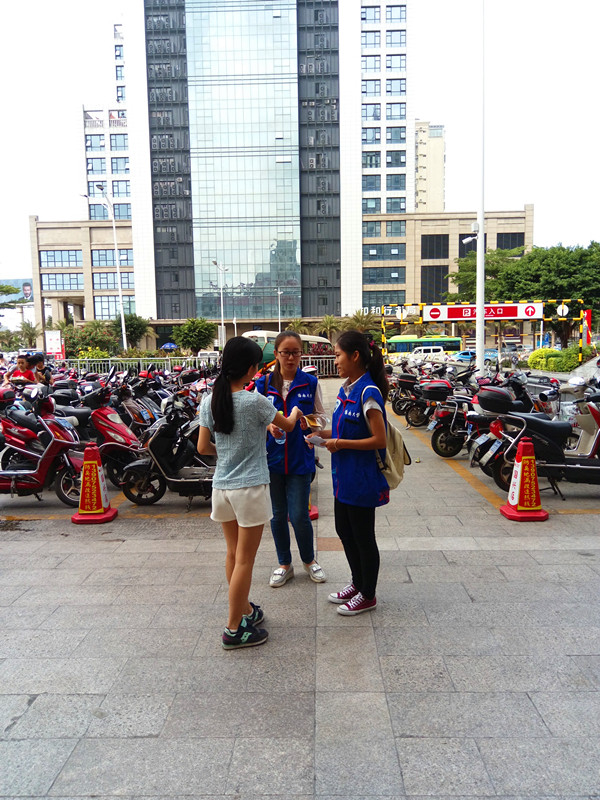 11月的海南依旧炎热,但丝毫不影响志愿者们的积极性。来到大街上,志愿者们两两一组进行劝募。志愿者和行人耐心地解说,回答着他们的疑问,没有任何不耐烦。劝募过程中,志愿者们有遭到质疑,有受到无视,虽有一定打击,但他们相互鼓励后重拾信心,面带灿烂的笑容对待每一个行人。随着太阳渐渐高升,阳光也愈加猛烈,但志愿者们没有丝毫的懈怠和抱怨,继续行走在街道上积极劝募。即使一个上午努力下来没有劝募到善款,但是每一个人都为贫困地区的孩子们都尽了自己的一份力,奉献出了自己的爱心,用自己的方式去帮助这些孩子们。