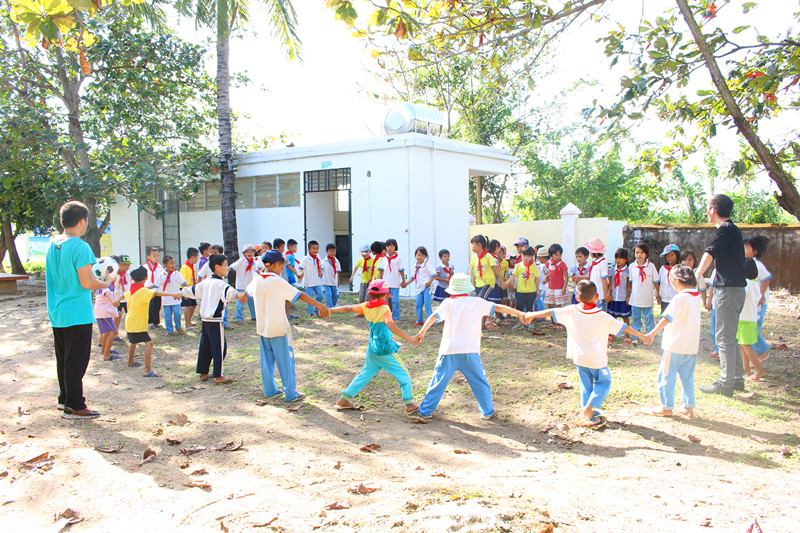 志愿者与孩子们游戏中