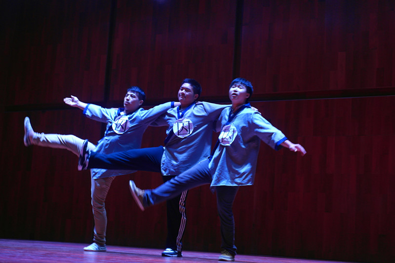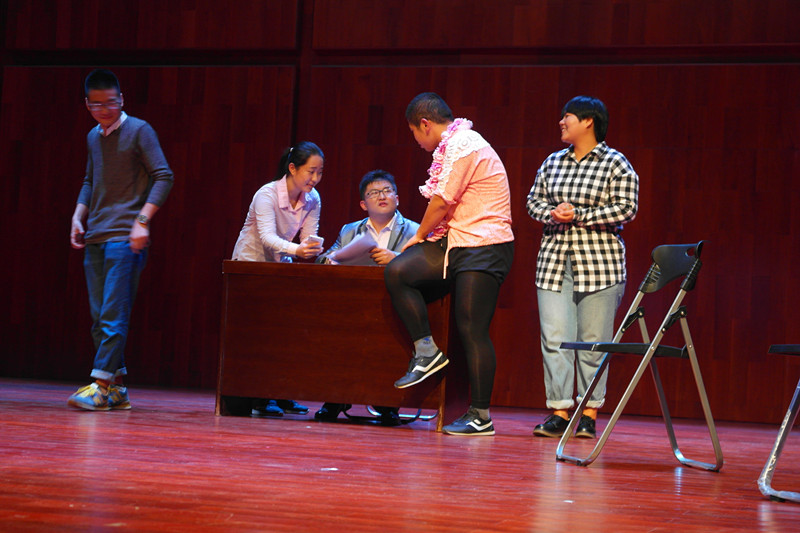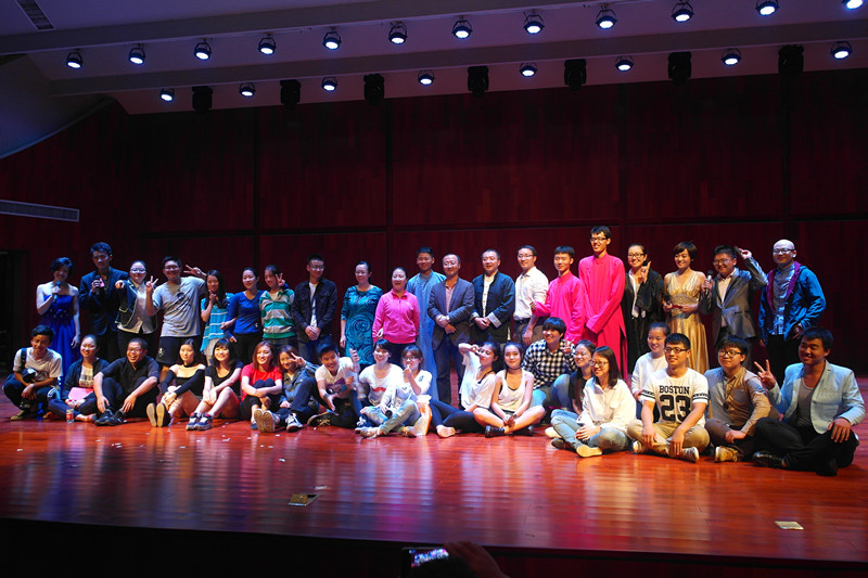 副院长石晓岩老师,戏剧影视文学系鞠斐老师,学工办公衍峰老师。专场演出现场座无虚席,很多观众在过道席地而坐,还有很多观众全程站着观看表演。