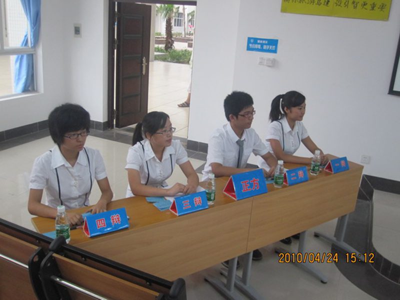 4月25日下午3:00在4—108人文传播学院文韬武略辩论队与儋州校区环境与植物保护学院辩论队进行了激烈角逐,本场比赛吸引了众多观众,全场座无虚席。双方就“建设海南国际旅游岛是引智更重要还是引资更重要”展开了精彩绝伦的唇枪舌战,人文传播学院文韬武略辩论队为此次比赛的正方,坚持“引智更重要”的观点。本次辩论赛的评委由经济与管理学院马国强老师、教务处王冬梅老师、艺术学院陈泰义老师、政治与公共管理学院王宁老师和材料与化工学院郝万军老师担任。