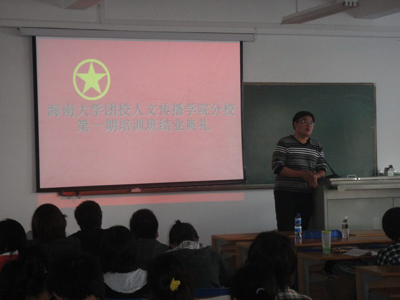 2010年12月6日下午,人文传播学院2010-2011学年团校第一期学生干部培训结业典礼在4教310多媒体教室隆重举行。莅临结业典礼的嘉宾有人文传播学院团委书记谢庚全老师,学工办王森森老师。结业典礼由人文传播学院团委学生副书记、团校副校长杜盼盼主持。120余名学生干部学员参加了本次结业典礼。
