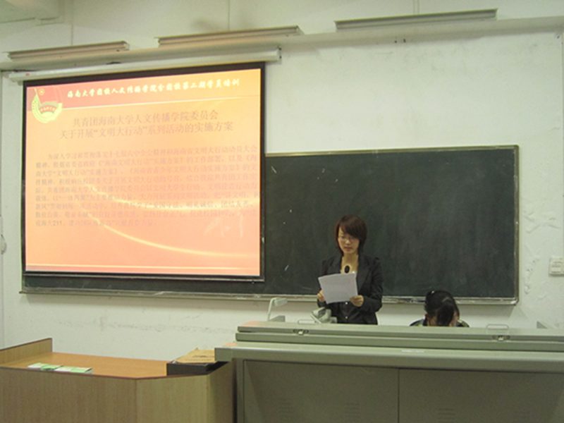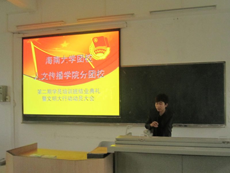 “文明大行动”的开展做了动员讲话,明确了团学成员今后在学习和工作方面的任务,令大家对未来工作充满信心,同时也号召大家在全省大力开展文明大行动,全校努力迎接211评估的背景下,奋发有为,争当先锋,充分发挥学生干部排头兵的模范带头作用,为全省文明大行动的开展、海南国际旅游岛建设、海大211建设贡献青春力量。