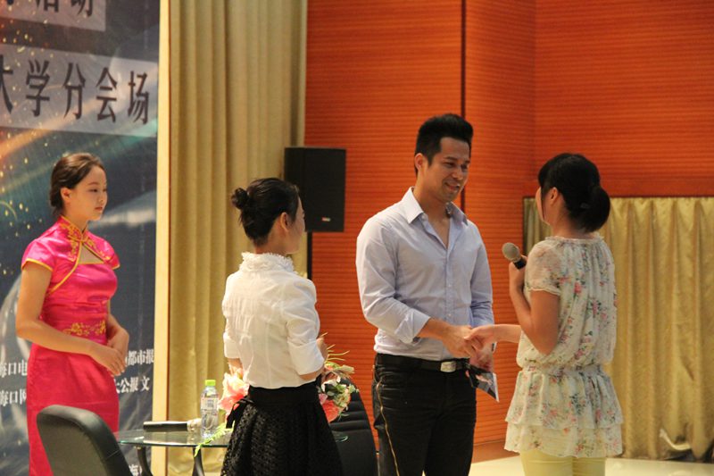 本次活动采取现场访问的形式进行。在主持人热情洋溢的介绍后,吉飞龙来到了会场,现场气氛顿时热烈起来。接着吉飞龙就从广州的跑龙套生活,到现在的成就,对同学们进行了分享。在第五个访问题目结束后,现场开始了用各地方言说台词的互动,大家积极参与,用各地方言讲了吉飞龙在电影中的台词,别具特色的各地方言也引起了现场阵阵掌声。接下来,主持人就电影内容对吉飞龙进行了访问。在被问及剧中的人物与其本身性格是否相像的问题时,他结合自身经历回答了自己在生活中对角色的体验,并举出实例使同学们可以更好地理解。 访问的最后,现场大屏幕上播放了电影宣传片。同时吉飞龙也通过一些图片向大家展示和分享了自己的追梦历程。讲述结束后,我校学生对其奋斗经历、未来规划等进行了现场提问,吉飞龙也对同学们的提问做了详细的回答,并提出了自己的建议。会后,吉飞龙与现场的粉丝和影视协会工作人员合影留念,并跟同学们热情的交流和签名,海南省各大媒体机构会后也对其进行了采访。 本次活动的举办不仅给影视协会提供了沟通和交流的平台,也为情色小说