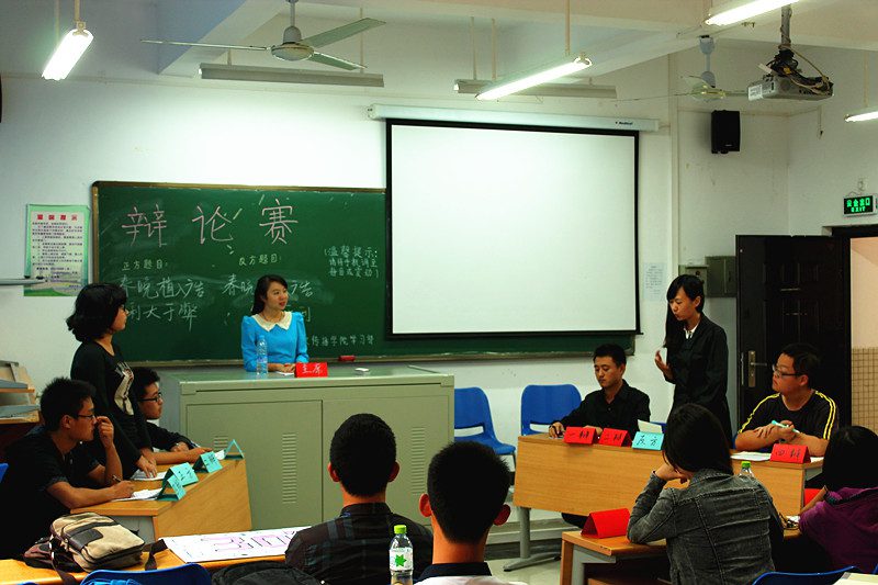 11月17日下午14:30,人文传播学院辩论赛之系内选拔赛在5教115和120教室拉开序幕。本次比赛邀请到了人文传播学院“文韬武略”辩论队优秀辩手赵晓静,侯霁担任比赛主席,赖秋宏,陈伟兴,刘怡秀,吉晶晶,万正璨,熊艺颖以及11级中文资深辩手尹舒慧担任比赛评委。 本次系内选拔赛分为四场,第一场辩论赛是汉语言文学专业系内赛,辩题为“开设光棍节是有利还是有弊”;第二场是戏影专业系内赛,辩论双方围绕“英语是否应该保留在高考科目中”展开激烈辩论;第三场广告专业系内赛,辩题为“春晚植入广告有利还是有弊”;第四场是汉语言国际教育专业系内赛,辩论双方针对“快餐式国学对文化传承有利还是有弊”展开激烈辩论。正反双方的辩手们通过开篇立论、攻辩环节、攻辩小结、自由辩、总结陈词五个主要环节将论述层层深入,与对方辩友针锋相对,观众仿佛置身无硝烟的战场。在每一场比赛中,辩手围绕辩题展开激烈讨论,辩手们以时下的热门事件为例,充分的论证了己方观点。戏影专业的辩题是当下的热门话题之一,辩手们也对话题的了解比较深,双方的辩论也尤其精彩。在每一场辩论结束时,都有评委做精妙点评,及时指出了辩论双方优劣所在,并给予了辩手们细致的点评。 本次比赛,辩手们沉稳机敏的辩风和睿智灵活的答辩充分展现了人文学子的青春风采。希望他们能改正自身的缺点,听取评委们的意见,在接下来得比赛中能再接再厉,为学院辩论队创造新的辉煌。