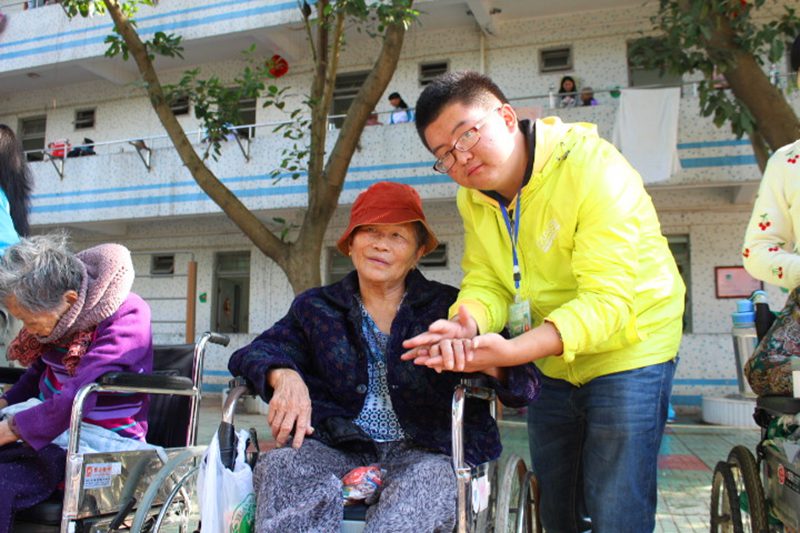 志愿者们和老人在一起