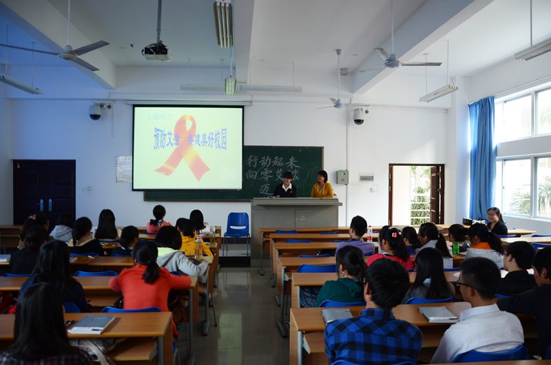 12级中文2班的同学在4号教学楼203教室举行了主题为“有爱,不怕‘艾’”的“世界艾滋病日”主题班会。12级年级辅导员王俊延老师出席了本次班会,12级中文2班班长申志君同学、团支书陈习雯同学担任班会主持人,12级中文2班全体同学参加了此次班会。 班会开始时,申志君同学通过播放大学生防艾反歧视教育微电影《红贝壳》,引入本次班会主题。陈习雯同学利用幻灯片,向班级同学普及艾滋病防治常识,传播途径,病源人群和预防方式。随后,在主持人的引导下,在班级中开展了关于“如何正确对待艾滋病人”的自由讨论,同学们认真思考,积极发言。 活动结束时,王俊延老师做了总结发言,鼓励同学们进一步学习艾滋病防治相关知识,理性认识艾滋病,消除对艾滋病人的歧视。并积极倡导同学们,对艾滋病人给予更多关爱。 最后,本次班会的成功举行让同学们学习了艾滋病防治知识,明白了如何正确对待艾滋病患者。有爱,不怕“艾”。让我们行动起来,向零艾滋迈进!