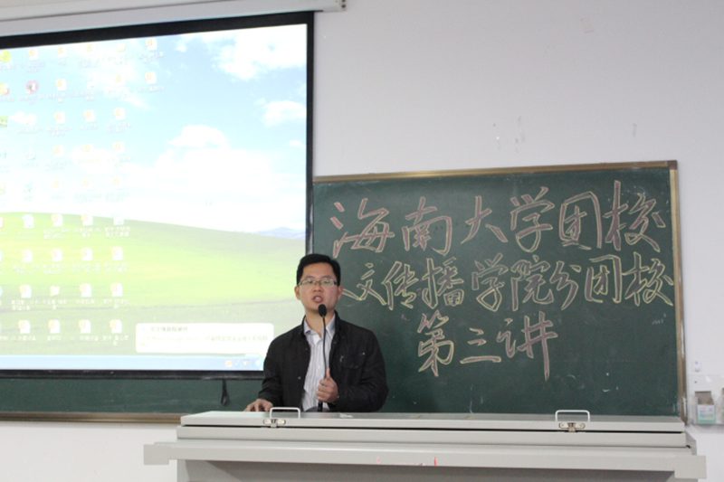 团委陈青老师担任主讲嘉宾,学工办熊文军老师主持讲座。 在学工办熊文军老师的热情欢迎和介绍后,陈青老师做了题为“如何运用新媒体从事高校共青团工作”和“青年志愿者服务工作”的主题报告。在新媒体运用专题开始前,陈青老师先向到场的同学做了“微信使用人数”的现场调查,接着又提问了几位同学日常生活接受信息的方式。通过两个简短的互动,他告诉大家,新媒体在我们的生活中起到越来越重要的作用,利用新媒体管理共青团工作也成了大势所趋。陈青老师还就传统媒体与新媒体的比较,新媒体在高校工作的作用,以及微信改变世界等逐一进行了介绍。讲座下半场,陈青老师围绕高校共青团青年志愿者服务工作向学员引入介绍了“志愿海南信息平台”,他从网站宗旨、作用、操作方法、具体内容等几个方面细致入微的为大家进行了讲解,并希望同学们了解和使用该平台。 讲座最后,熊文军老师主持作结。他指出,作为团学干部有责任有义务成为新媒体使用的引领者,创新工作方式,利用新媒体传播学院团学工作动态,服务好全院学生。最后他邀请大家微信关注海南共青团、海大思源以及情色小说