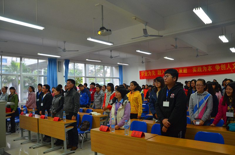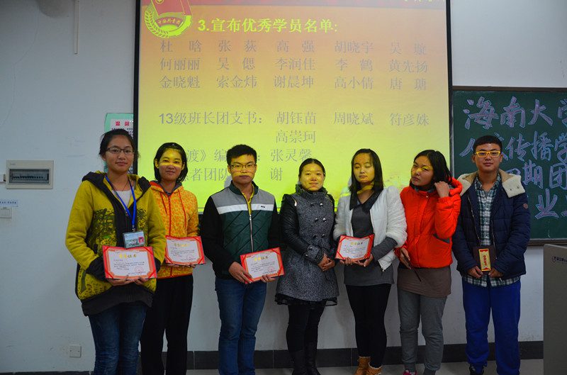 团校人文传播学院分团校第六讲暨结业典礼在4教112隆重举行。出席本次活动的嘉宾有学工办熊文军老师 、王俊延老师,人文传播学院学生会主席李文杰 王忠莉 康墨扬。本次活动由学生团委副书记夏国淞主持,人文传播学院第四届团学干部培训班全体学员共同参与。 会议首先由团委副书记夏国淞致开场词和介绍到场嘉宾,接着熊文军老师做了团校总结发言。熊老师首先对各位同员的顺利结业致以祝贺,并回顾了本期团校培训。熊老师说在培训过程中无论是室内理论课学习,还是室外素质拓展,每位学员都能参与其中,精诚团结,相信短短的团校培训会是各位学员大学生活中一段美好的经历和记忆。最后他对所有学员在团校中的表现给予了充分肯定并提出几点希望,他希望在坐的各位团学干部能充分发挥好引领、团结、服务广大人文学子的学生干部职能。 讲话结束后,优秀学员颁奖仪式隆重举行。在历经一个多月的培训后共有来自全院的21位同学获得优秀学员称号。颁奖结束后优秀学员代表胡晓宇做了精彩发言。她提到在一个多月的培训中对中国共青团有了全新的认识,并获得了很多宝贵的经验,在以后的工作和生活中也将坚持践行中国共青团的精神。会议的最后全体起立奏唱中国共产主义青年团团歌。 在为期一个多月的培训中,各位学员在团课中学习了实践技能,掌握了新媒体的运用,也懂得了珍惜团学生活。在素质拓展训练中,展现了学员们敢于拼搏的精神,体现了团学紧密合作,齐心协力的团队精神。短暂的团校培训落下帷幕,相信广大学员将在今后的工作中学以致用,积极地发挥好学生干部职能作用。