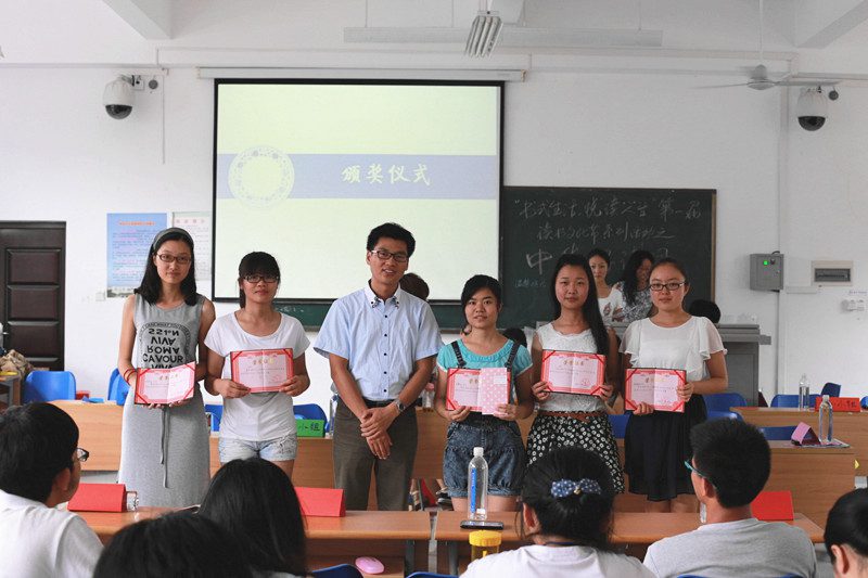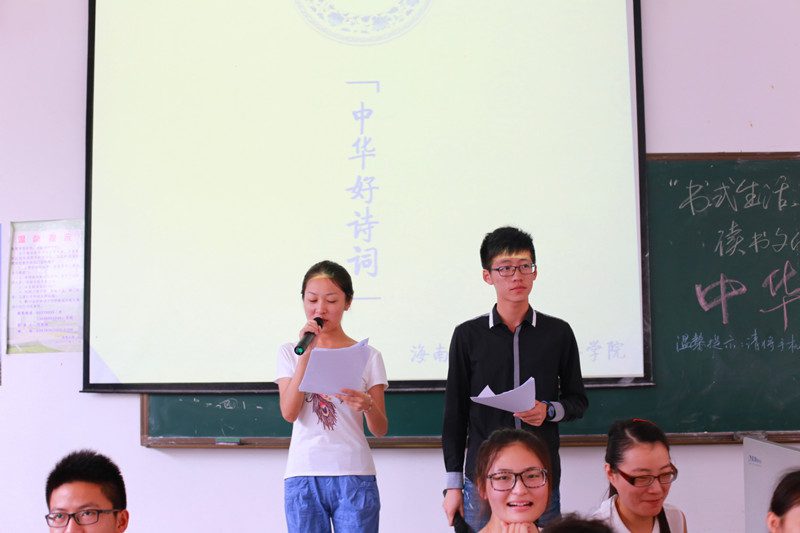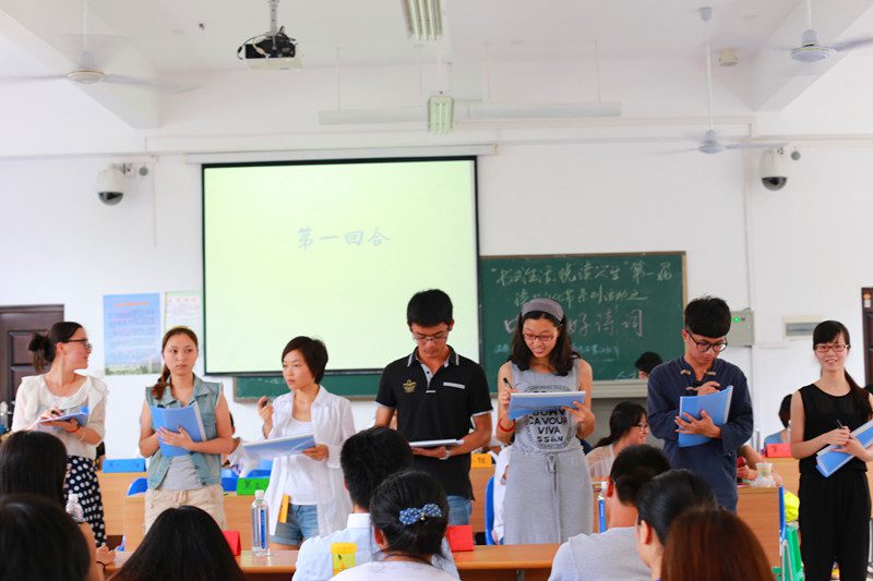 4月27日上午9:00,人文传播学院“书式生活,悦读人生”第一届读书文化节之“中华好诗词”活动在4教203如期举行。本次活动本着增强对传统文化的归属感以及认知度,提高大家不断学习传统文化的兴趣,鼓励学不断提高自身的阅读量及文化修养为主题,特向全院学生开展。最终共有来自全院的9组45位参赛选手参加了比赛,人文传播学院学工办熊文军老师和学生会主席李文杰也出席了本次活动。 本场比赛共分为三个环节进行,经过三个环节的激烈比拼,最终确定本次比赛的冠亚季军并举行颁奖典礼。第一个环节为成语接龙。各小组以抽签决定比赛题目并进行为时三分钟的比赛,在规定时间内以所接成语个数进行计分,一个成语一分。本环节结束后共有两个小组淘汰,七个小组晋级。第二个环节为汉字听写。在本环节中每轮每对派一个人进行比赛,每轮共五题,每题30秒作答时间。最终以累积得分为本环节最后得分,得分在前五名的队伍进入决赛。第三个环节为诗词竞答,本轮的题目多样有含有某种主题的诗句、含有某字的诗句、诗词背诵、选择题等。本环节采取小组合作的方式共十轮,得分排在前三的队伍将成为本次比赛的冠亚季军。 在活动正式开始前情色小说