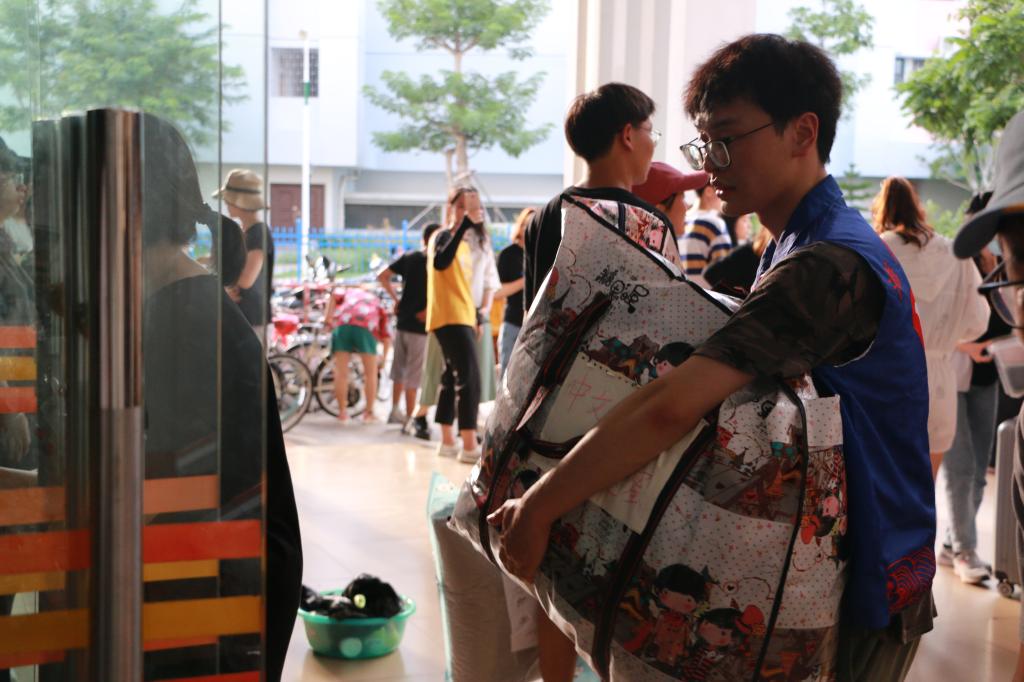 四十分钟过后,城西搬迁车队到达紫荆公寓一期及14栋楼下,开始了新校区的搬迁。院领导高度重视,对学院学生关怀备至,全程参与搬迁工作,维持秩序,及时疏导搬迁现场,更是亲自上阵帮同学们一起搬行李。期间,更有志愿者们的身影为搬迁工作添上了一道靓丽的风景。除了来自本学院的志愿者们,还有来自19级经济学院林家乐、管理学院柳煦强、信息与通信工程学院宋智龙、园艺学院王义,计算机与网络空间安全学院袁振羽、赵泽立、孟禹希等同学,展现了海大学子的志愿服务精神。