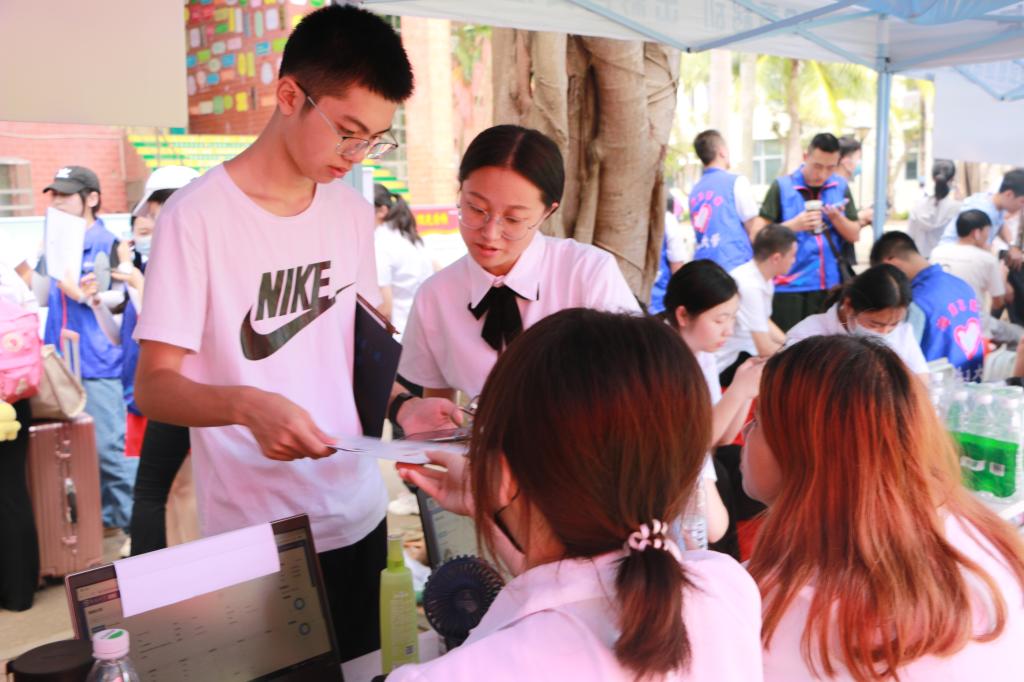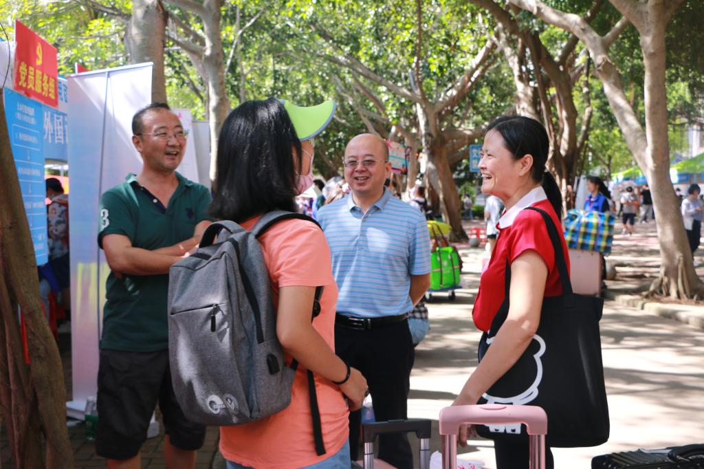 在大本营迎新点,学院党委书记邱华祥、党委副书记罗邻球同新生亲切交谈,关心学生情况,并对学生未来四年的大学学习生活给予厚望。学院在宿舍为每位新生放置了爱心大礼包,礼包内包括医用防护口罩、免洗消毒液等防疫物资以及由学院精心制作的新生入学指南和刻有学院院训的书签。